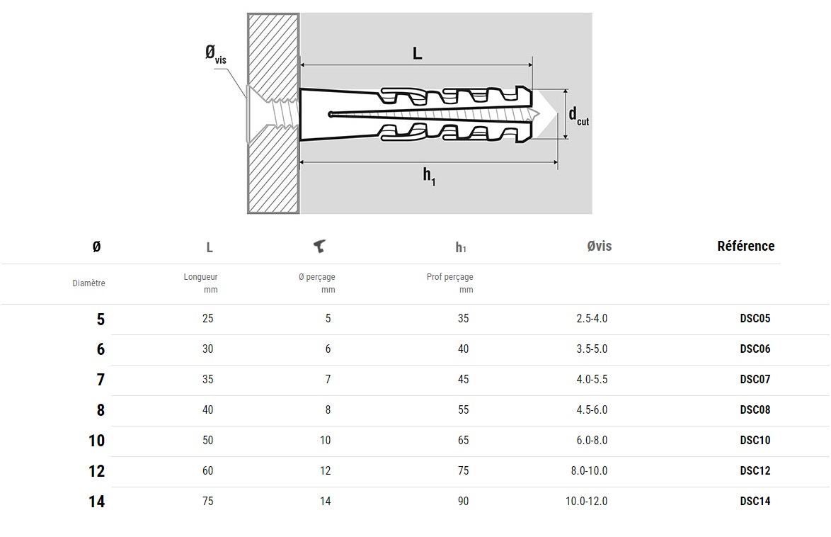 | Libellé | Cheville à expansion nylon sans collerette 8X40mm boîte de 100 - SCELL-IT - DS08 |