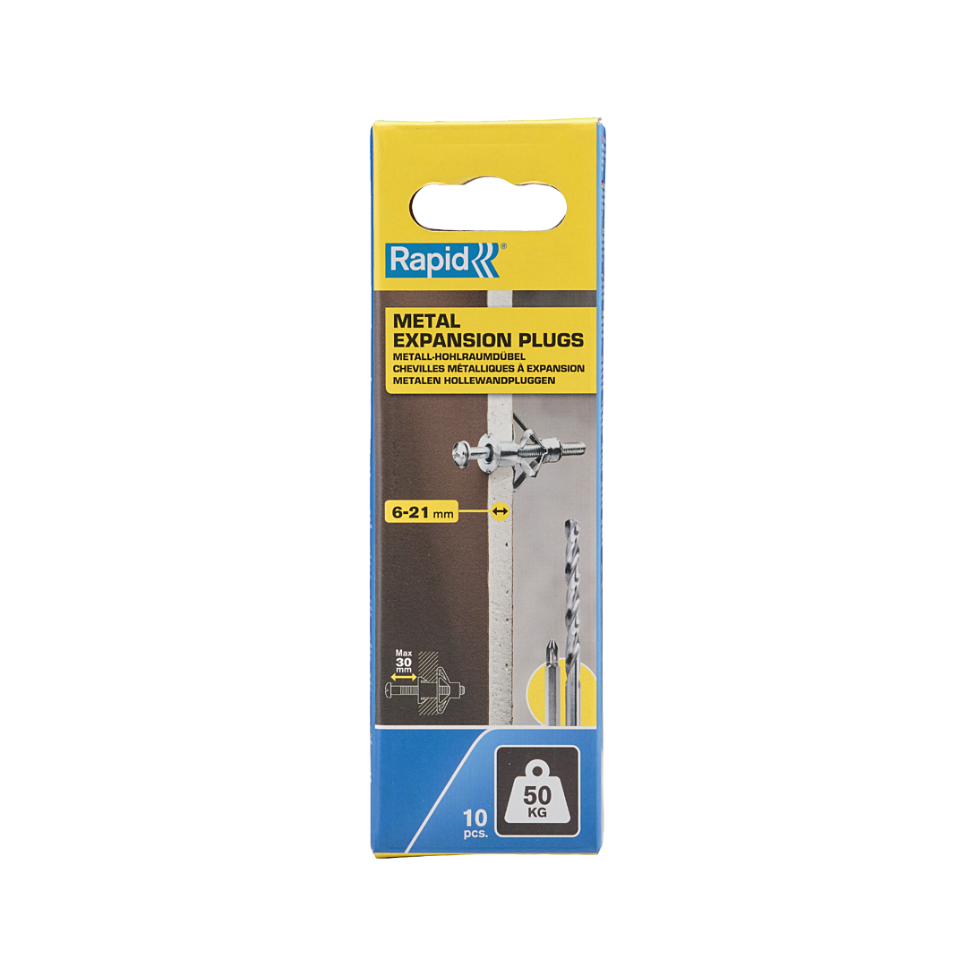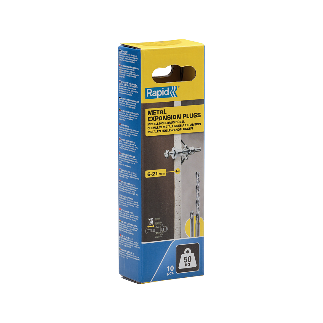Chevilles à Expansion diam.13x52, 50kg, Vis M6x63 - Boîte de 10 pcs avec forêt et embout de vissage