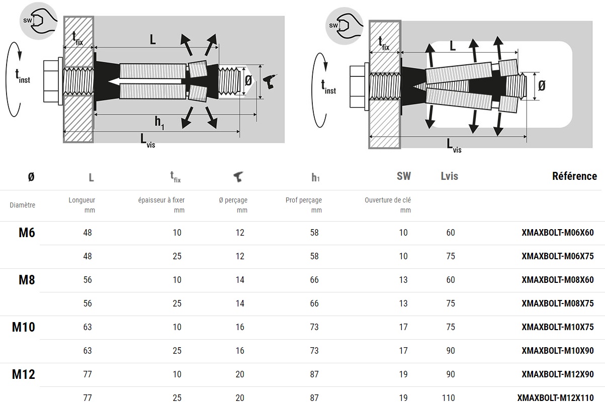 | Libellé | Chevilles multi-matériaux charges lourdes acier zingué sans vis M8 boîte de 25 - SCELL-IT - XMAX-BOLT-M08-SV |