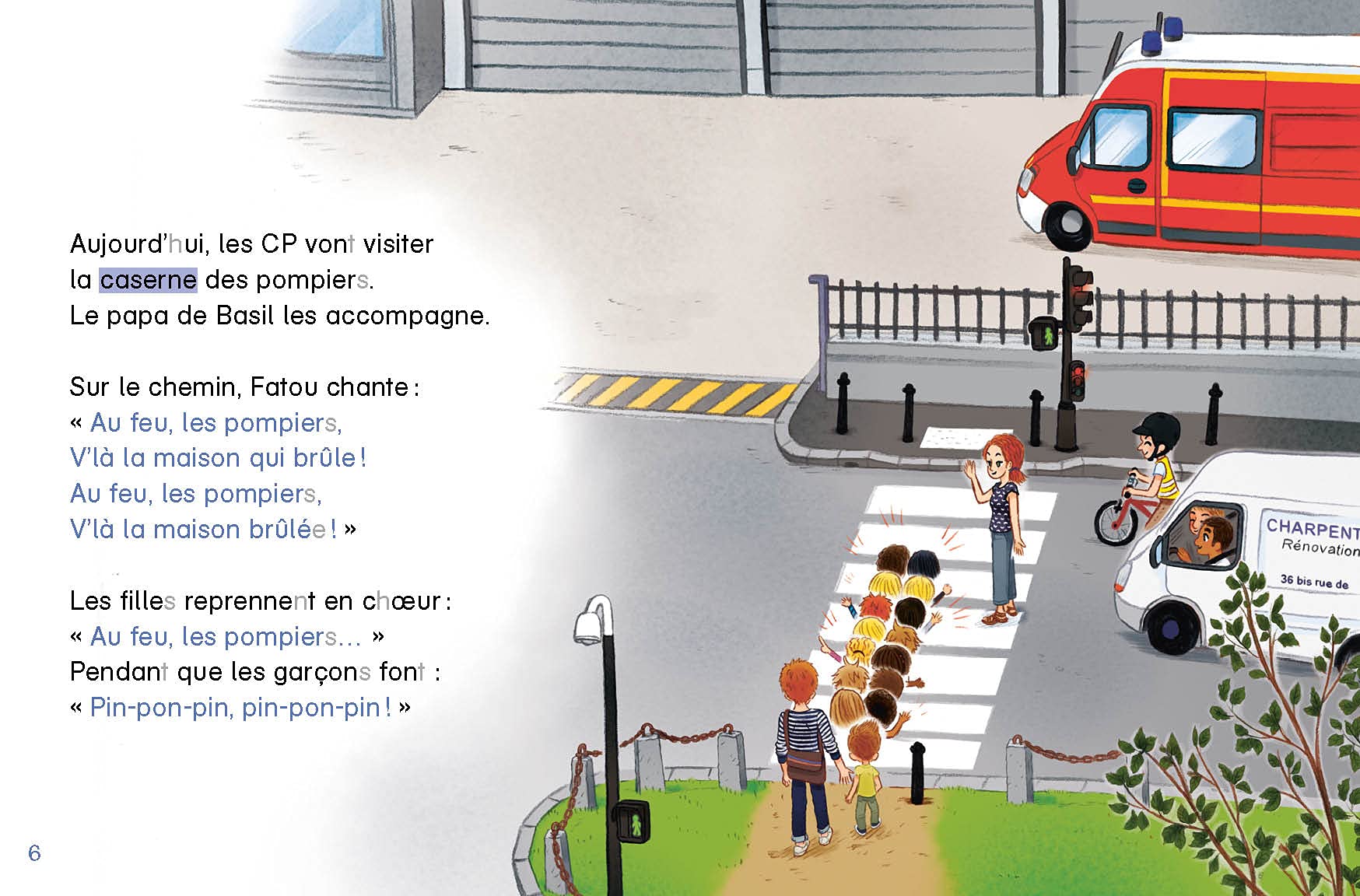 "Aujourd'hui, les CP vont visiter la caserne des pompiers. Sur le chemin, les filles chantent : - Au feu, les pompiers ! Pendant que les garçons font : Pin-pon-pin, pin-pon-pin !"1 histoire + 1 dico mot-image + des activités ludiques.