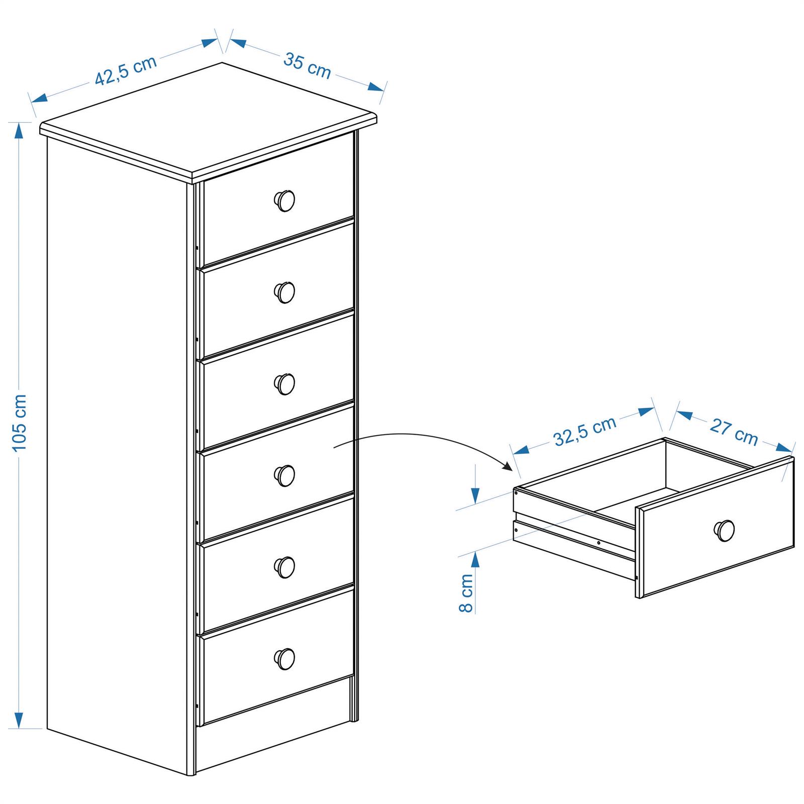 - Dimensions des tiroirs (L x H x P) : 32,5 x 12 x 27 cm
