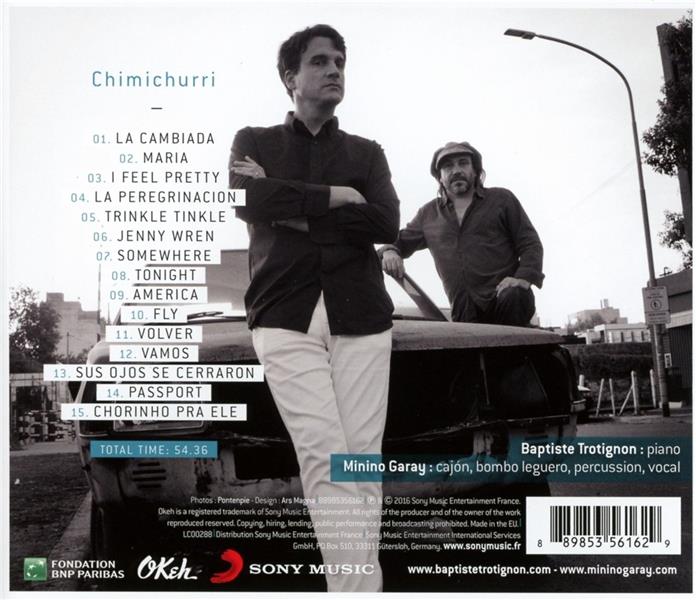 \"Chimichurri\" est le nom d'une épice assez piquante originaire d'Argentine. Et le mélange que proposent ici le pianiste français Baptiste Trotignon et le batteur et percussionniste argentin Minino Garay est aussi quelque chose de spécial. Elle rassemble des éléments européens, afro-américains et sud-américains dans des chansons aussi connues et diverses que \"Maria\" et \"I feel Pretty\" de Bernstein, \"Jenny Wren\" de Paul McCartney, \"Volver\" de Carlos Gardel ou \" Passport \" de Charlie Parker \". \" Un album qui séduit par ses différentes sphères et crée de la joie \", tel est le verdict du \" Jazz Magazine \" français.