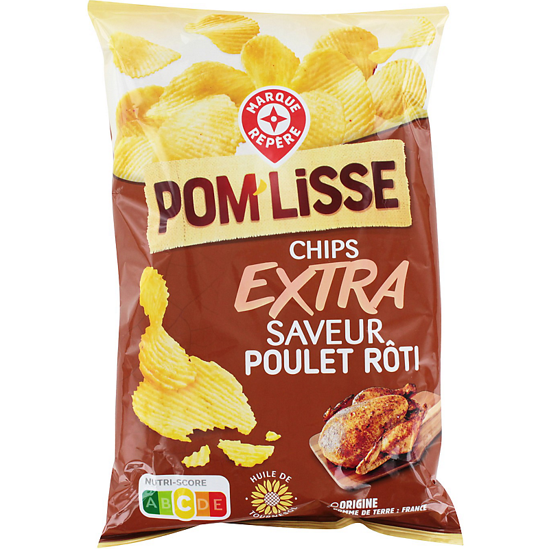 Chips de pommes de terre ondulées saveur poulet rôti POM'LISSE