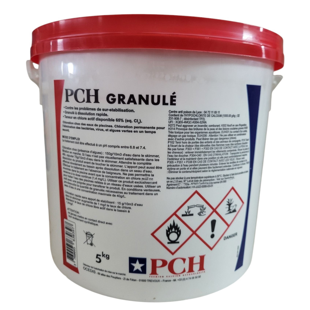 | Libellé | Chlore choc granulé 5kg - hypochlorite calcium - pch |