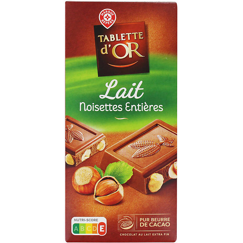 Chocolat au lait extra fin aux noisettes entières TABLETTE D'OR