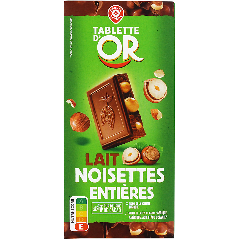 Chocolat au lait extra fin aux noisettes entières TABLETTE D'OR