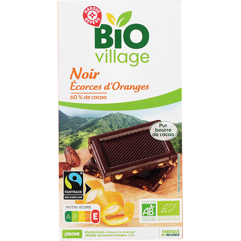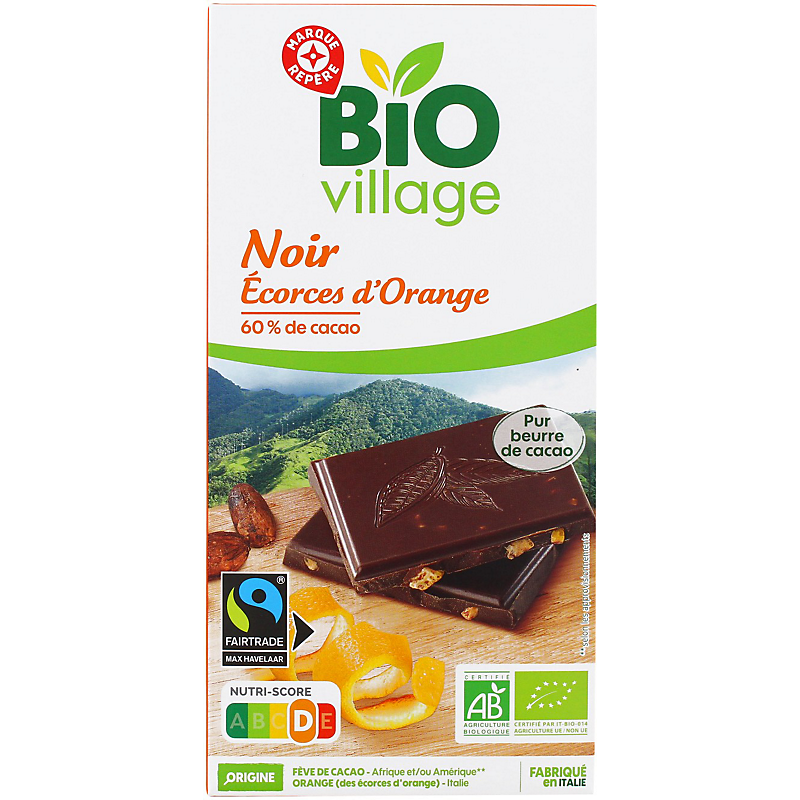 Chocolat noir aux écorces d'orange confites - Produit issu de l'agriculture biologique BIO VILLAGE