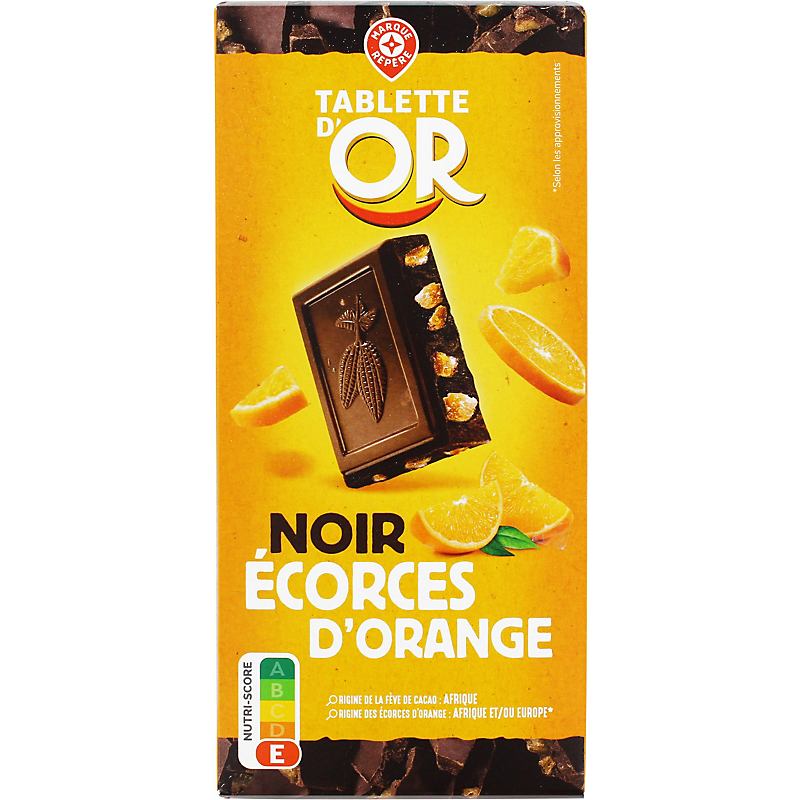 Chocolat noir supérieur aux écorces d'orange confites TABLETTE D'OR