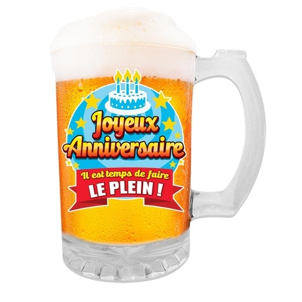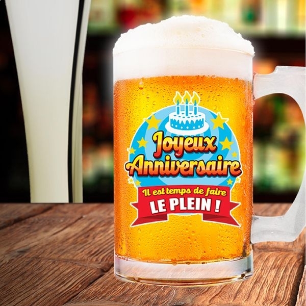 Libellé Chope de bière avec inscription joyeux anniversaire
