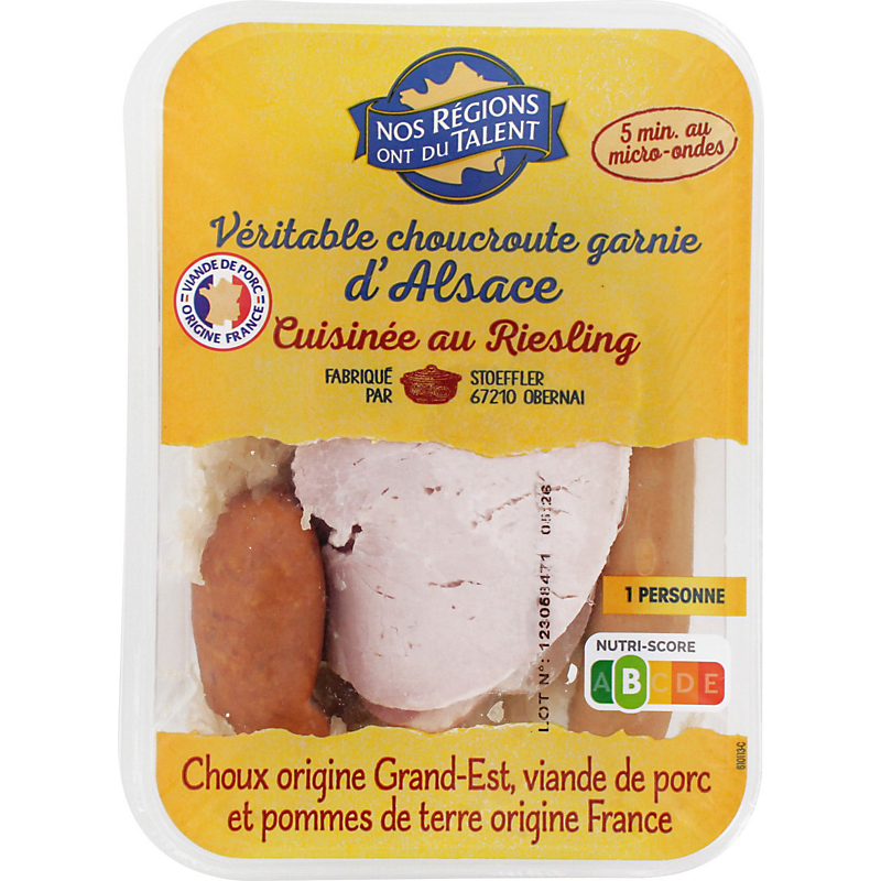 | Origine des principaux ingrédients | CHOUX ORIGINE : GRAND-EST, VIANDE DE PORC ORIGINE : FRANCE, POMME DE TERRE ORIGINE : FRANCE |