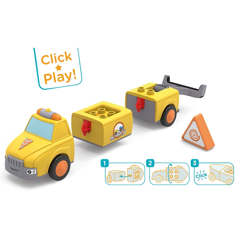 Chris et Carry sont rapidement sur place si Oldy s'arrête ou si une autre équipe de Toddys tombe en panne. L'équipe de remorquage jaune vif est visible de loin. Ils sont tous les deux bien équipés et sont infatigables dans leurs efforts pour récupérer leurs amis où qu'ils soient. Chris et Carry viennent avec des hululements bruyants et la lumière jaune clignote. Sur les lieux, Chris protège d'abord le point dangereux avec son triangle d'avertissement très proéminent. Il demande ce qui s'est passé et inspecte attentivement le véhicule. Si Chris ne peut pas réparer les dégâts sur place, il replie le super support de remorquage de Carry et attache solidement la voiture en panne derrière lui. Maintenant, il n'a plus qu'à récupérer rapidement son triangle de signalisation et à l'insérer à nouveau. Et puis c'est parti pour l'atelier suivant pour remettre la voiture en état. Jouet passionnant et de qualité supérieure pour les enfants à partir de 24 mois, avec moteur à friction (moteur à volant) pour encourager la motricité fine, la persévérance, la patience et pour s'amuser. La figurine de jeu Chris a des parties mobiles : la tête peut être tournée, les bras peuvent être levés et les jambes peuvent être pliées. Le véhicule Carry peut être divisé en trois parties et combiné avec d'autres véhicules Toddys. Effets lumineux et sonores pour soutenir les caractéristiques du véhicule. Le dispositif de remorquage rabattable et le triangle amovible stimulent également l'expérience de jeu. Chris Carry est compatible avec les composants d'autres fabricants. Système siku « Click&Play » : facile à combiner grâce au système de rotation et de poussée des pièces du véhicule et les jambes peuvent être pliées. Le véhicule Carry peut être divisé en trois parties et combiné avec d'autres véhicules Toddys. Effets lumineux et sonores pour soutenir les caractéristiques du véhicule. Le dispositif de remorquage rabattable et le triangle amovible stimulent également l'expérience de jeu. Carry est compatible avec les composants d'autres fabricants. Système siku « Click&Play » : facile à combiner grâce au système de rotation et de poussée des pièces du véhicule