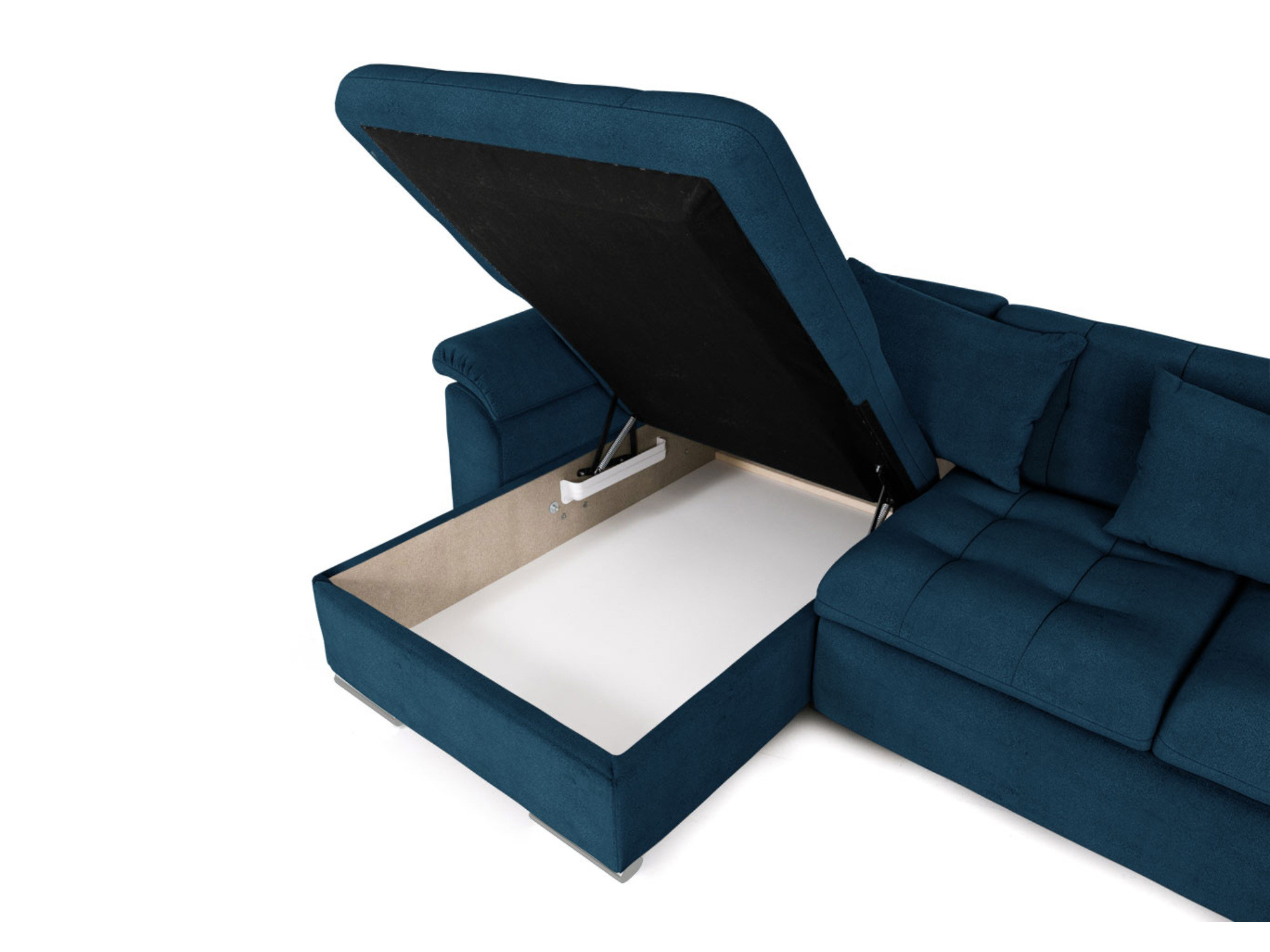 Le canapé panoramique Chuck a été pensé pour le quotidien : il est équipé d’une fonction convertible qui viendra se déployer entre les 2 méridiennes pour laisser apparaitre un couchage 290 x 125 cm. Attention, cette fonction est prévue pour un usage occasionnel. De plus, le canapé Chuck est équipé d’un coffre de rangement situé sous la plus petite des 2 méridiennes. Vous pourrez ainsi y ranger plaids, coussins, etc.
