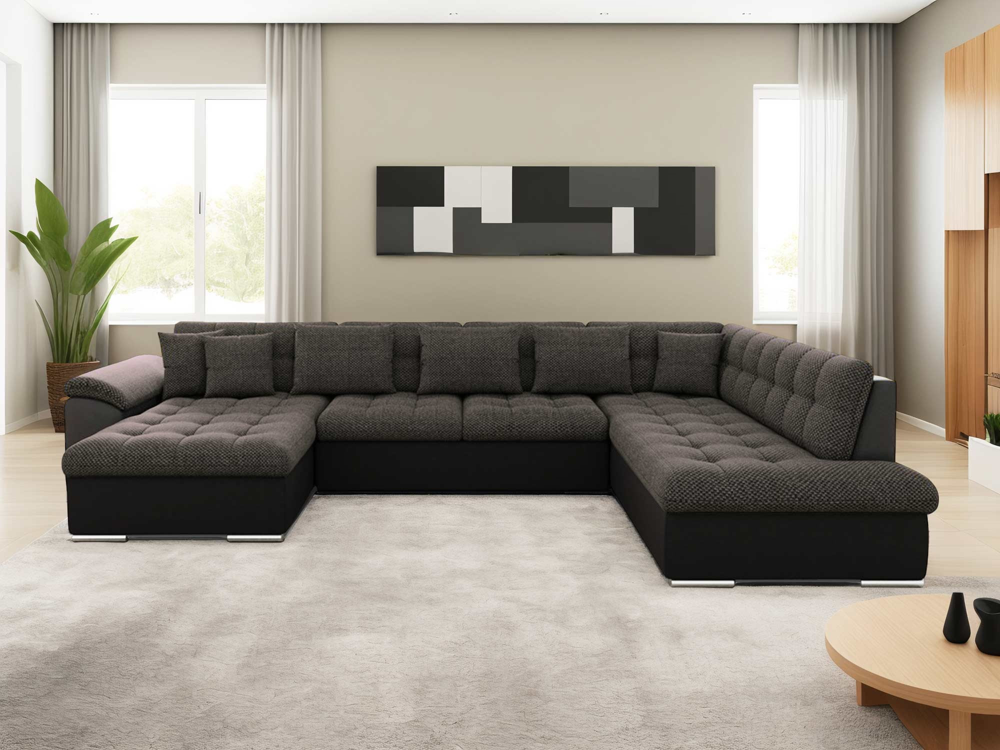 | Plus produit | [Chuck – canapé panoramique XXL droit] Grand canapé 7 places, parfait pour salons spacieux et accueil de vos proches. [Convertible XXL] Transformez-le en literie généreuse sur simple manipulation, confort moelleux garanti. [Coffre XXL intégré] Espace de stockage extra-large sous assise, idéal pour couettes et plaids. [Structure robuste] Ossature bois massif et pieds en métal, pour une stabilité durable et un style industriel affirmé. [Garantie 2 ans] Profitez de votre canapé en toute confiance avec une garantie de 2 ans. |