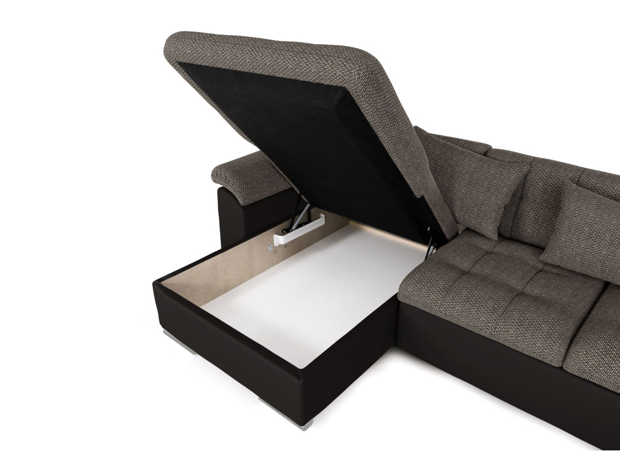 Le canapé panoramique Chuck a été pensé pour le quotidien : il est équipé d’une fonction convertible qui viendra se déployer entre les 2 méridiennes pour laisser apparaitre un couchage 290 x 125 cm. Attention, cette fonction est prévue pour un usage occasionnel. De plus, le canapé Chuck est équipé d’un coffre de rangement situé sous la plus petite des 2 méridiennes. Vous pourrez ainsi y ranger plaids, coussins, etc.