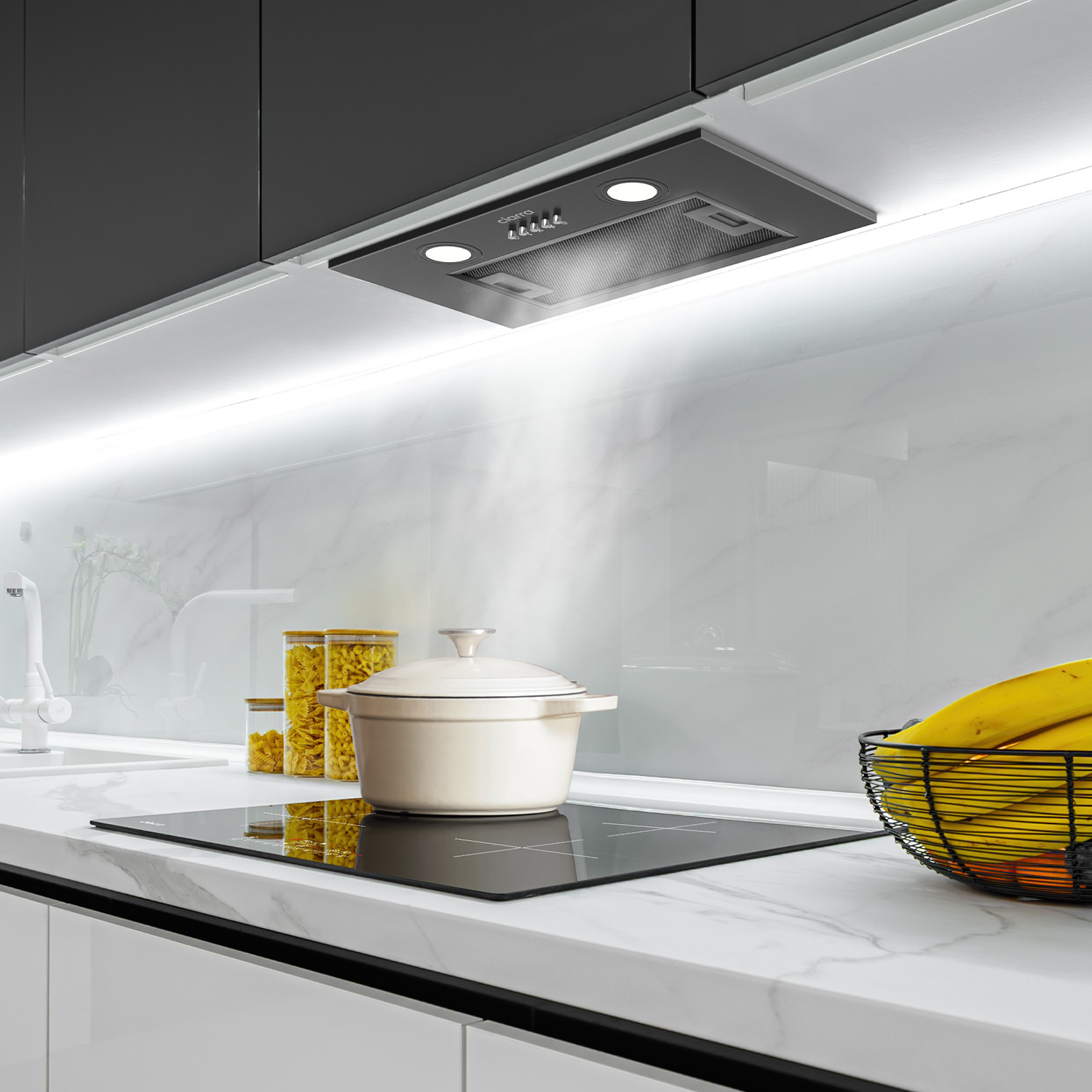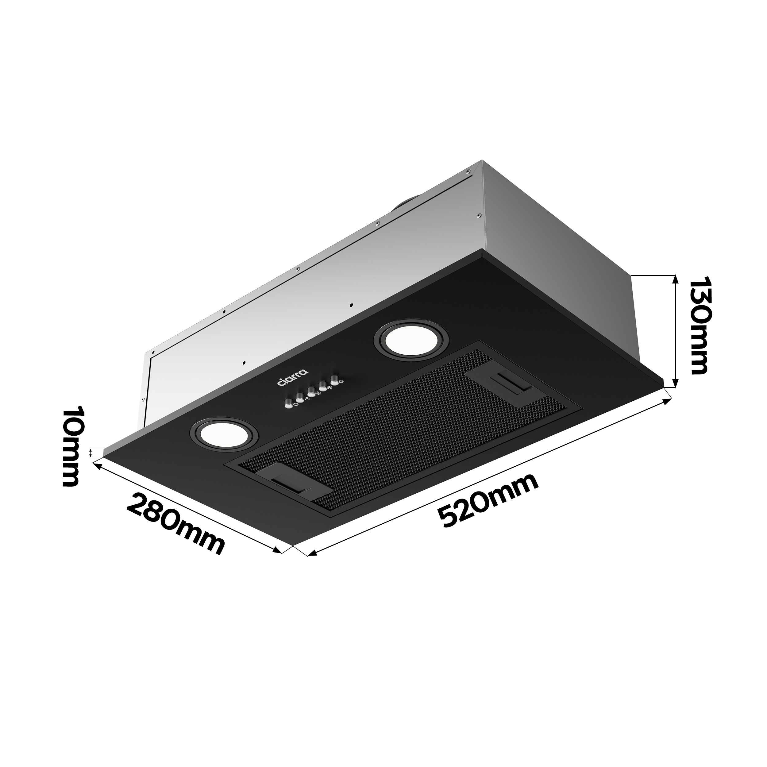 CIARRA Groupe Filtrant 52cm Hotte Encastrable 300m3/h 3 Vitesses Evacuation ou Recyclage 913ABK52