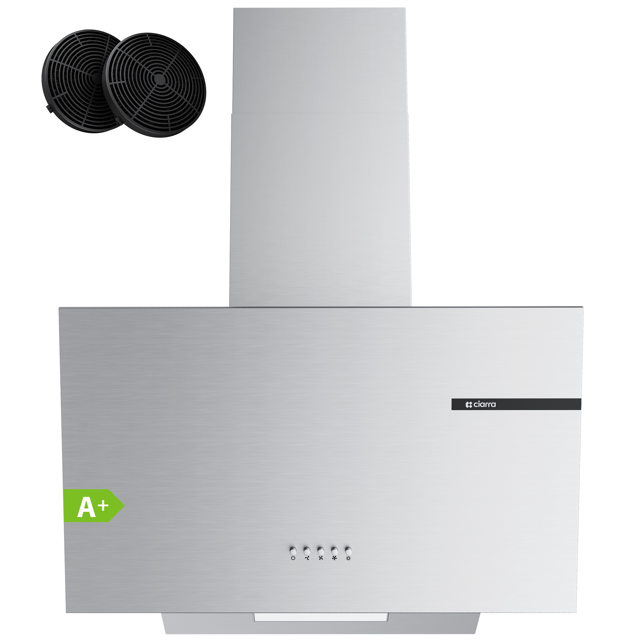 CIARRA Hotte Aspirante Inclinée 60cm 550m3/h 3 Vitesses Recyclage ou Evacuation Classe A+ CD6765AS