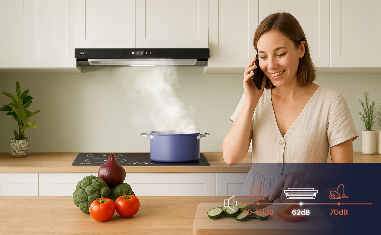 Niveau sonore maximal de 62 dB:La hotte aspirante assure une ambiance paisible dans votre cuisine même lors d'une utilisation intensive.