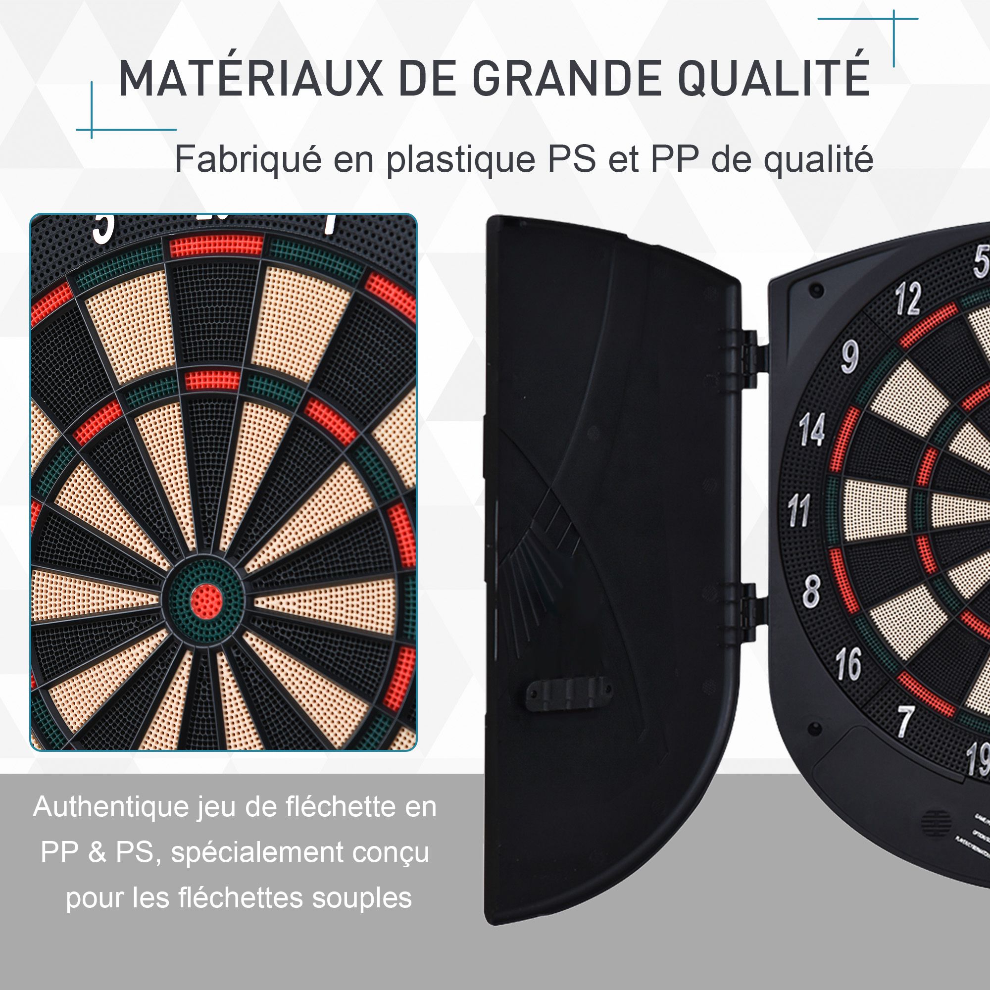 | Libellé | Cible jeu de fléchettes électronique refermable 26 jeux jusqu'à 8 joueurs affichage LCD haut-parleur noir |