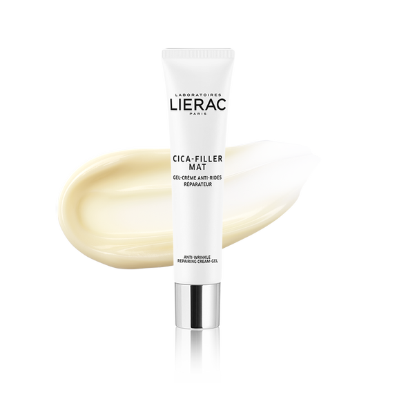 CICA-FILLER Gel-crème MAT, l'anti-rides Matifiant, formulé pour les peaux normales à mixtes. Inspiré des mécanismes de la cicatrisation tissulaire, ce soin quotidien contient un actif nouvelle génération à fonction rétinol-like: le Bakuchiol pro-collagène. Un actif d'origine naturelle plus efficace que le rétinol pour stimuler la synthèse de collagène I, mais sans ses effets indésirables. Le complexe Alchémille, Lierre, Prêle aide à réparer l'épiderme et à redonner de la tension au derme, tandis que notre concentré signature Hyalu-3 repulpe les tissus. Un actif pore refiner d'origine naturelle matifie la peau et resserre les pores. Son tube canule permet une application ciblée et hygiénique. 40ml. Sa texture fluide et non occlusive apporte une parfaite matité à la peau. Des poudres soft-focus floutent immédiatement les rides et apportent un bel éclat naturel. Son parfum aux notes de jasmin, pomme verte, bois de rose et accord ozonique distille une sensation de fraicheur.