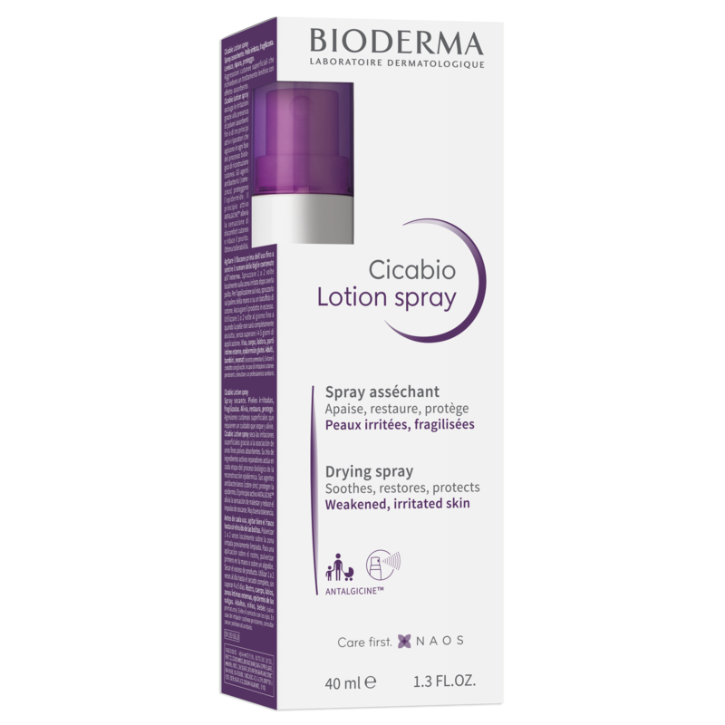 Cicabio Lotion spray assèche durablement les irritations superficielles grâce à l’association de fines poudres absorbantes d’origine naturelle.