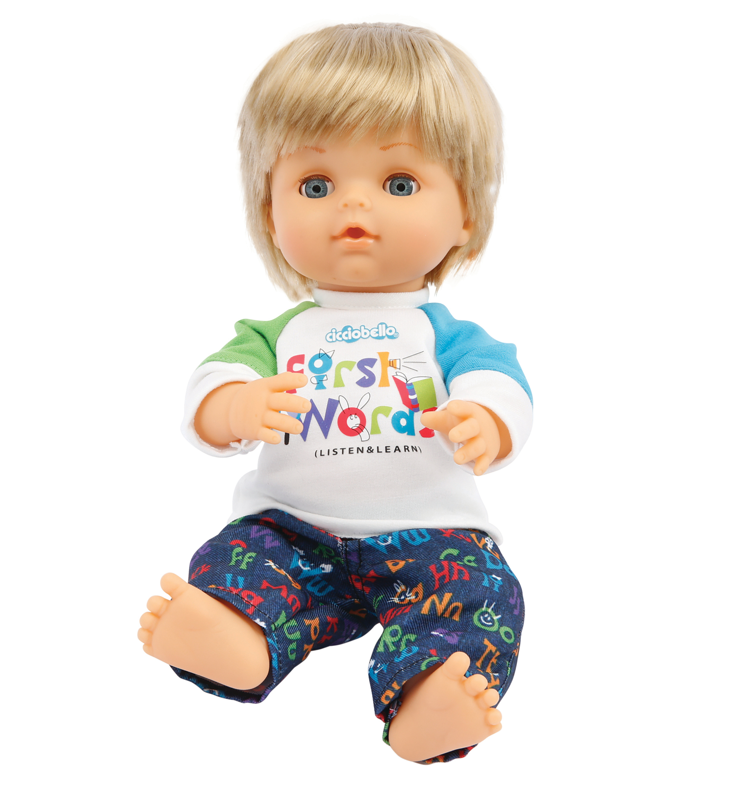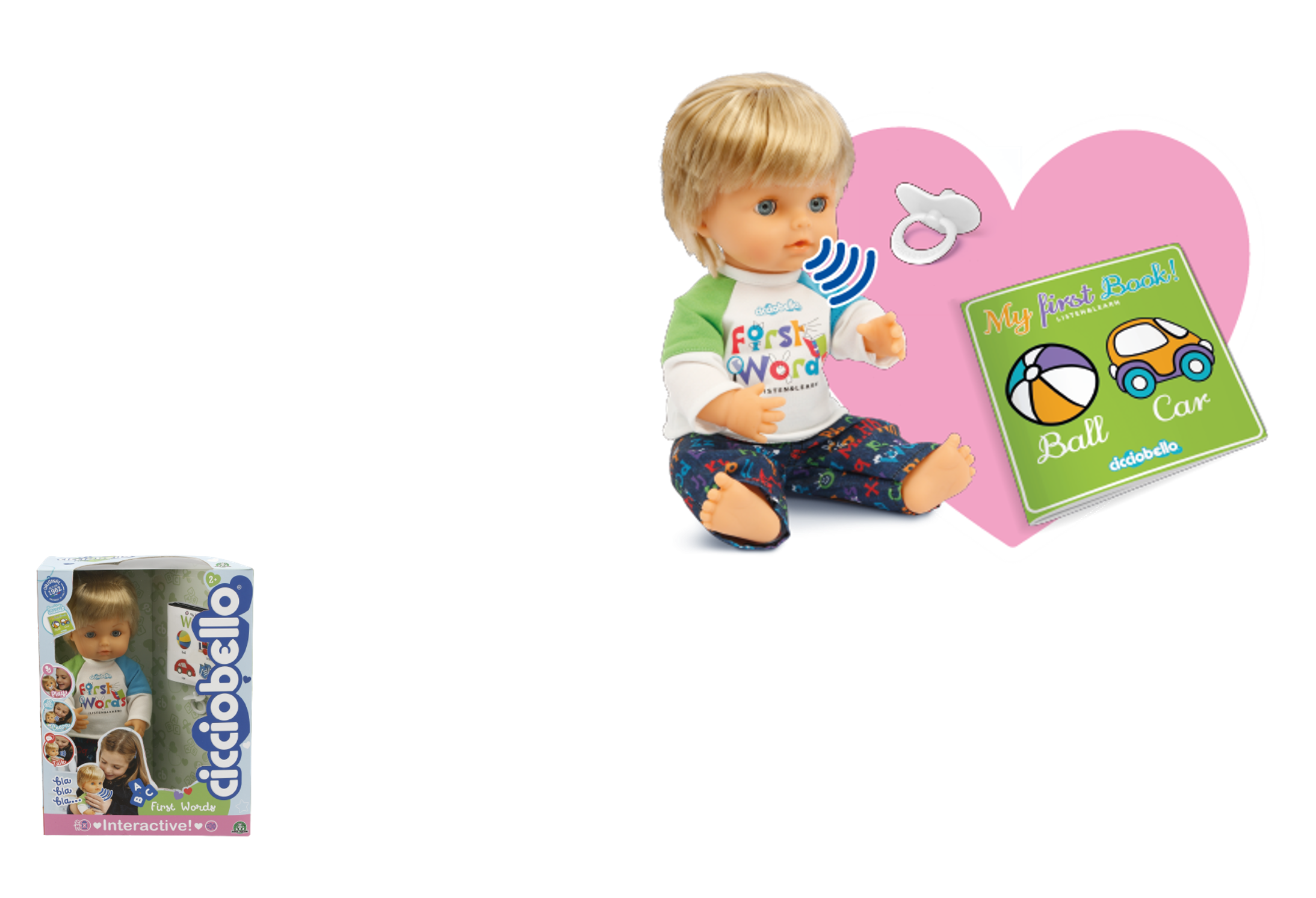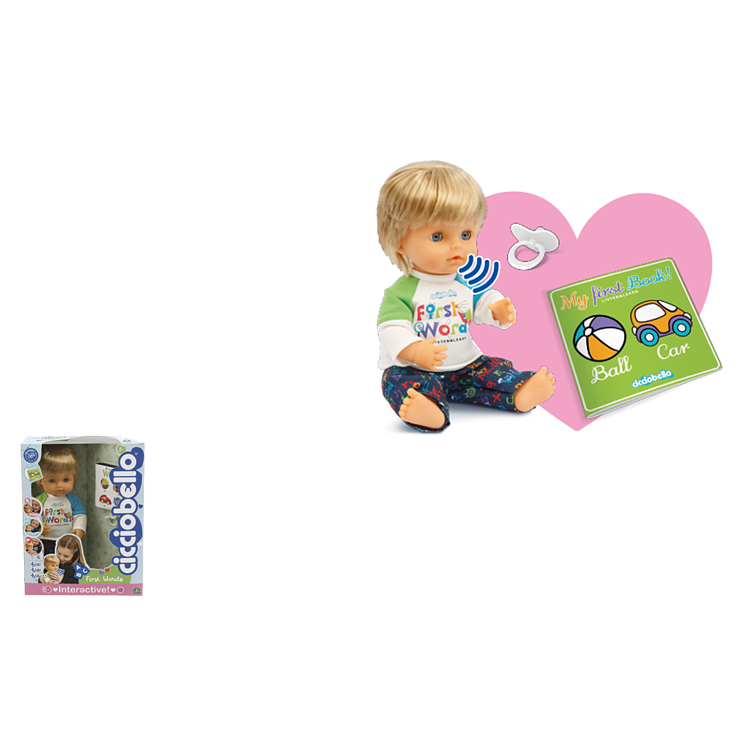 "Ton nouveau Cicciobello pour s’amuser à apprendre ensemble ! Cicciobello apprend à parler avec toi! Il peut répéter les mots de différentes manières, de façon aléatoires: Répéter le mot LENTEMENT Répéter le mot IMMEDIATEMENT Parfois, il n’a pas envie de répéter et il a besoin d’être encouragé à en apprendre d’avantage! Contient : Poupon 30 cm corps dur 1 livre avec quelques illustrations 1 tétine"