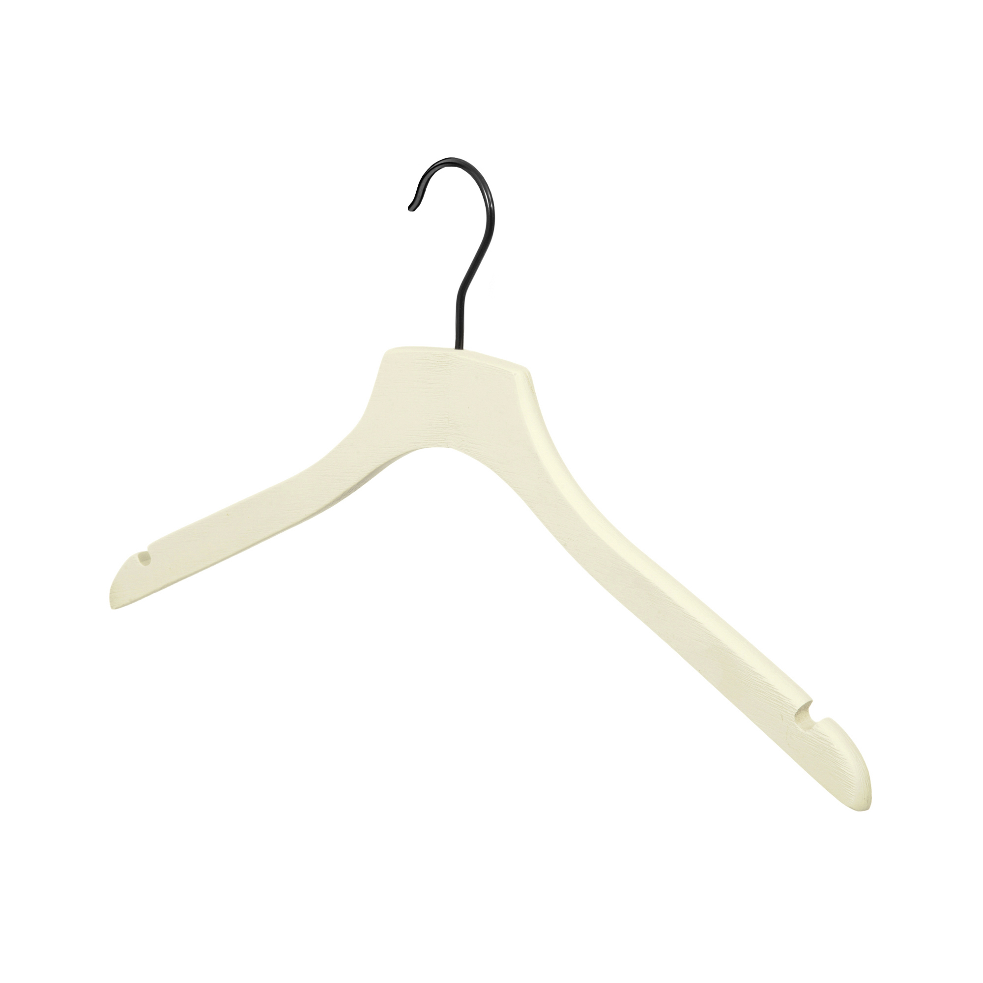 Equipez votre penderie de cintres solides et élégants comme ce cintre Cancale de belle qualité, en bois de lotus couleur crème avec encoches pour les vêtements à bretelles et crochet en métal noir. Dimensions 44 X 1,2 X H.25 cm.