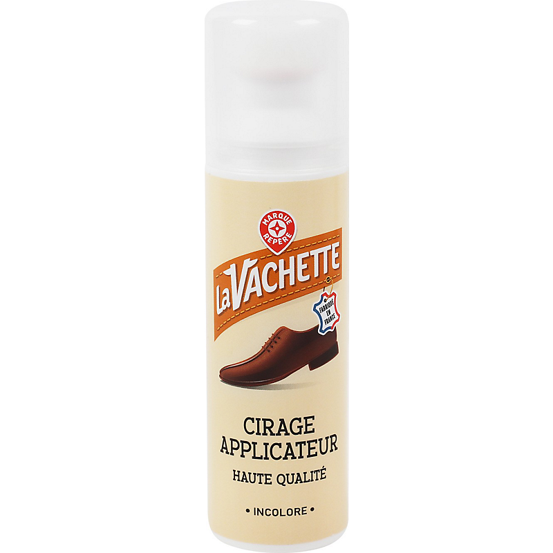 CIRAGE LIQUIDE CUIR INCOLORE LA VACHETTE INGRÉDIENTS: AQUA, HYDROCARBURES, C9-C11, N-ALKANES, ISOALKANES, CYCLIQUES, < 2 % AROMATIQUES (PE = 40°C), CETEARETH-25, SYNTHETIC WAX, CARNAUBA WAX, TRIETHAN (TRIETHANOLAMINE, DIETHANOLAMINE), PARFUM, CONSERVATEUR (CI 77947, BENZISOTHIAZOLINONE, ZINC PYRITHIONE).