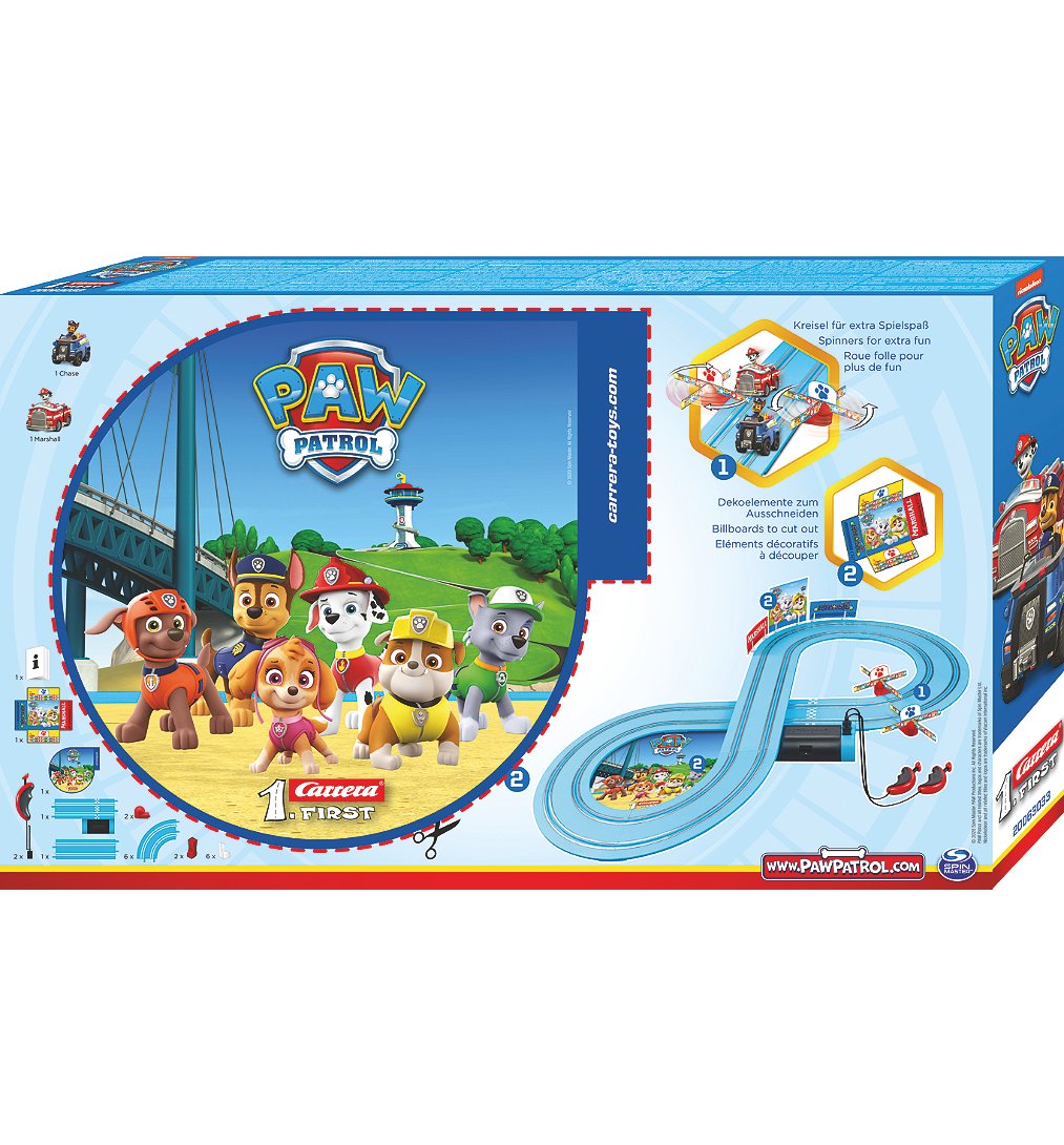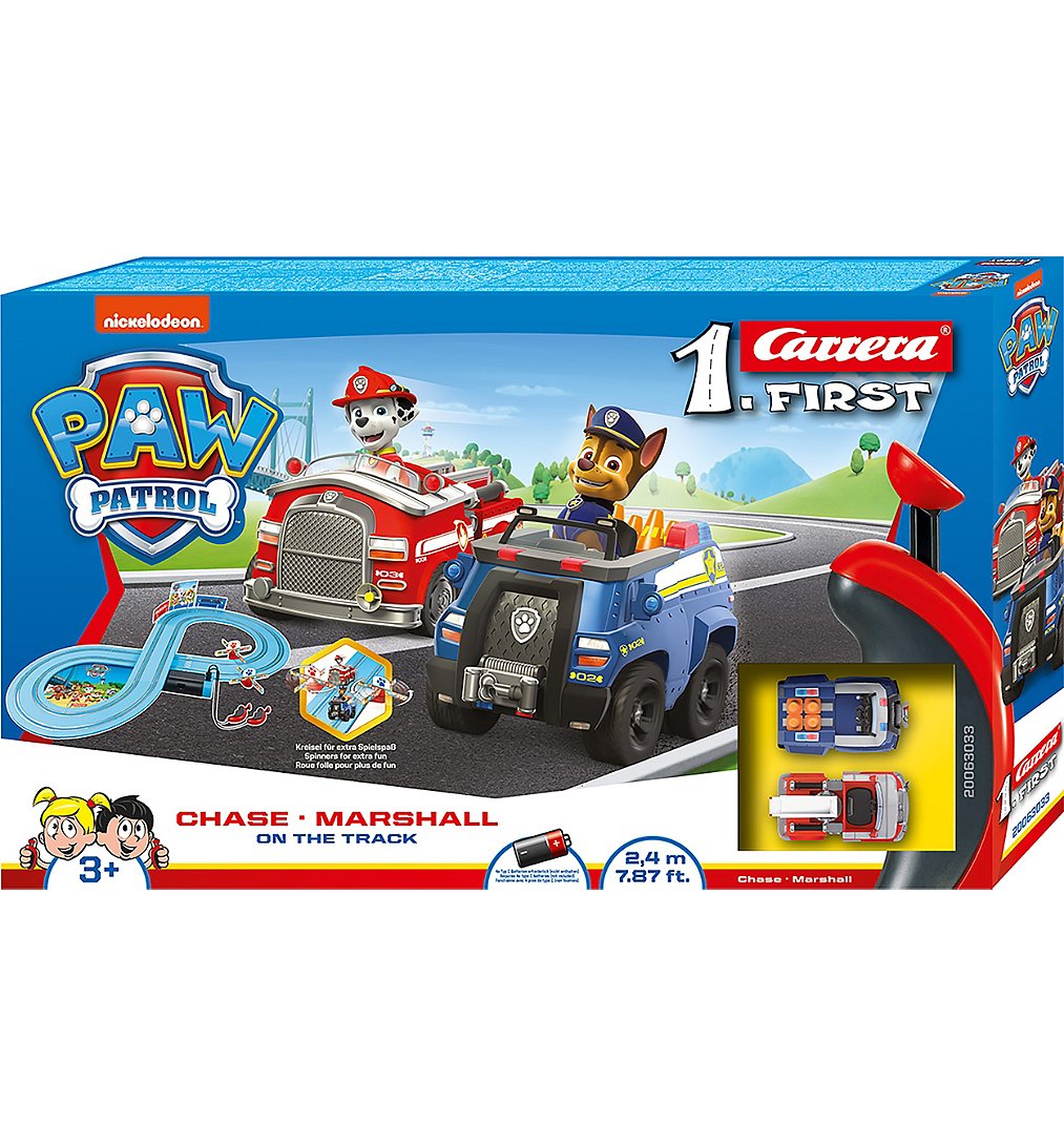 Un circuit conçu pour les petits. Echelle 1/50ème. Longueur de piste 2,4 m. 2 voitures incluses.