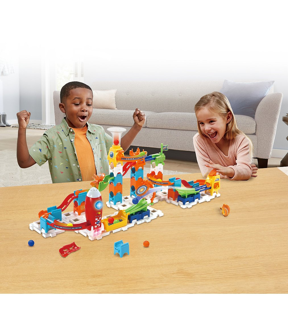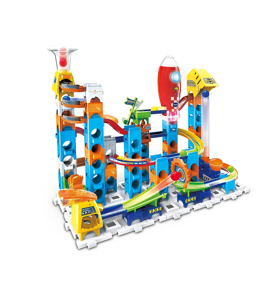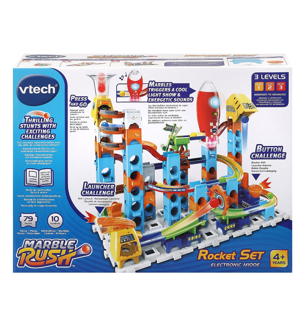 Marble Rush - Circuit à billes - Rocket Set Electronic M100E - 4 ans + 80 pièces et 10 MarbleBilles incluses pour créer un super circuit sur le thème de l’espace. Un lanceur pour projeter les billes horizontalement et leur permettre d’atteindre la cible ! Une projection verticale pour permettre aux MarbleBilles d’atteindre les sommets. Génial ! La fusée interagit lors des passages des MarbleBilles en émettant des sons et des lumières. Une zone de lancement pour projeter les MarbleBilles à toute vitesse ! De nombreux passages secrets, aiguillages et zones d’interactions. L’enfant développe sa motricité, sa créativité, sa logique et son imagination en créant des combinaisons à l’infini ! Compatible avec les autres sets de la gamme. Arrêt automatique. Boîte fermée. Fonctionne avec 2 piles LR6/AA fournies.