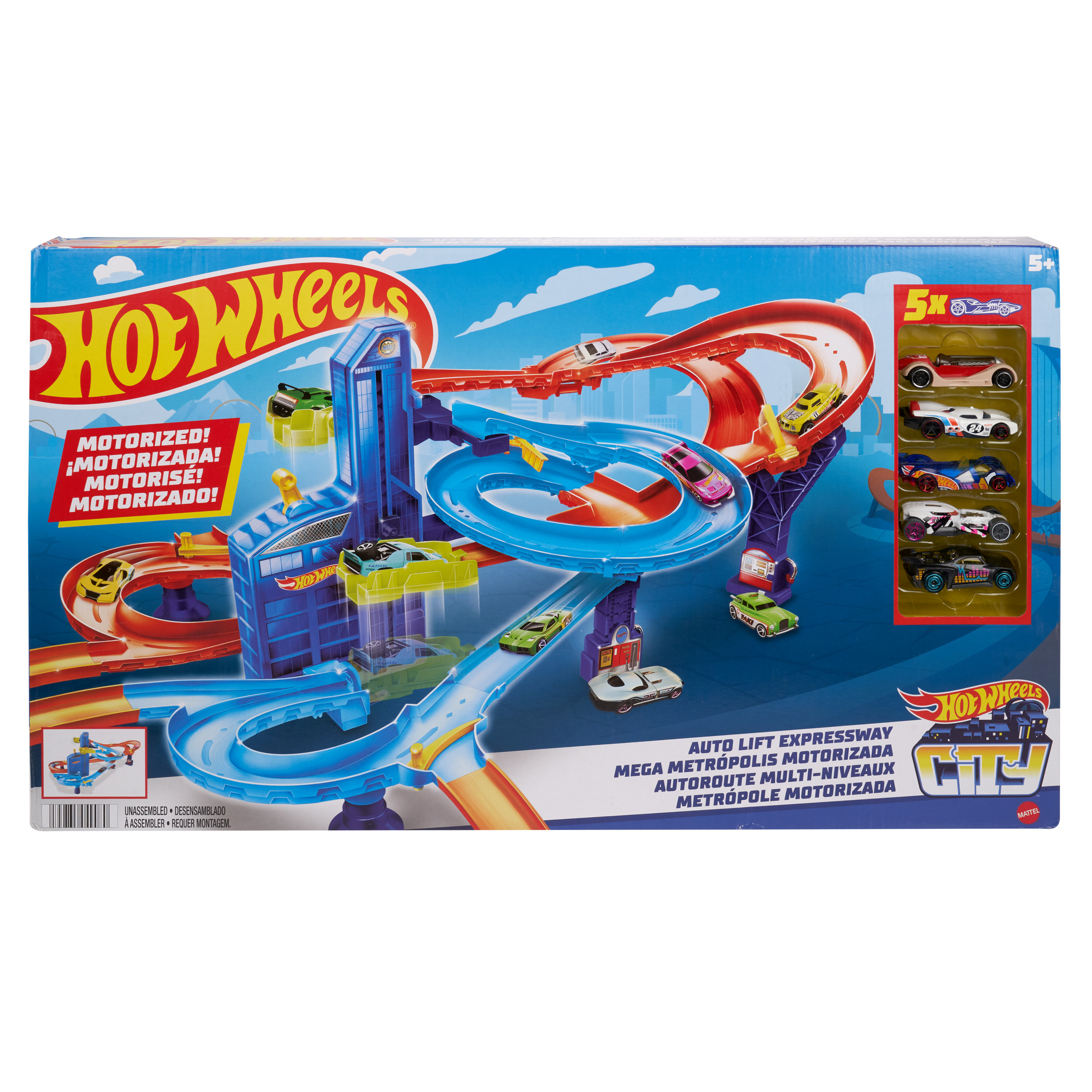 Circuit Hot Wheels® - Autoroute multi-niveaux + 5 voitures