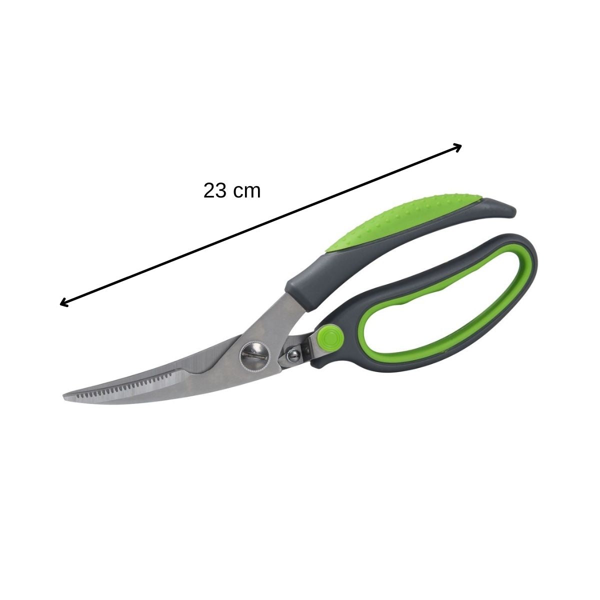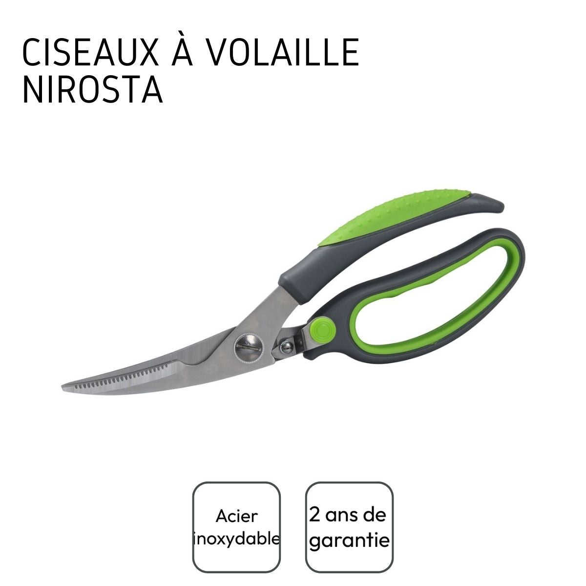 DESCRIPTION : Nirosta vous présente cette paire de ciseaux à volaille avec des lames affutées et dentelées pour une simplicité lors de la découpe de vos volailles. LE PETIT + : Grâce au ressort intérieur, cette paire de ciseaux à volaille vous permet de découper votre viande sans effort. COMPOSITION : Acier inoxydable, PP et TPR DIMENSIONS : 23 x 5,5 x 2 cm CONTENU : 1 paire de ciseaux à volaille Nirosta Cette paire de ciseaux est proposée par la marque Nirosta. Les ciseaux sont plus utiles qu'on ne pourrait le croire en cuisine car ils permettant très souvent d'ouvrir les paquets de nourriture à "ouverture facile". Vous pouvez également utiliser les ciseaux de cuisine pour ciseler des herbes aromatiques comme de la ciboulette, du basilic ou du persil. Cette paire de ciseaux est faite pour couper la volaille. Nirosta est une marque proposant des couteaux de très haute qualité. Depuis plus de 100 ans, la marque allemande fait briller l'acier inoxydable haute performance et est devenue synonyme de fiabilité et durabilité sans compromis. La coutellerie proposée par Nirosta repose sur un brevet de fabrication de l'acier inoxydable à partir d'un mélange de chrome et de nickel. Cela permet aux couteaux de cuisine de la marque d'être durables et performants en toutes circonstances. Nirosta, ce sont des couteaux de cuisine de qualité professionnelle abordables pour tous afin de partager la passion de la cuisine.