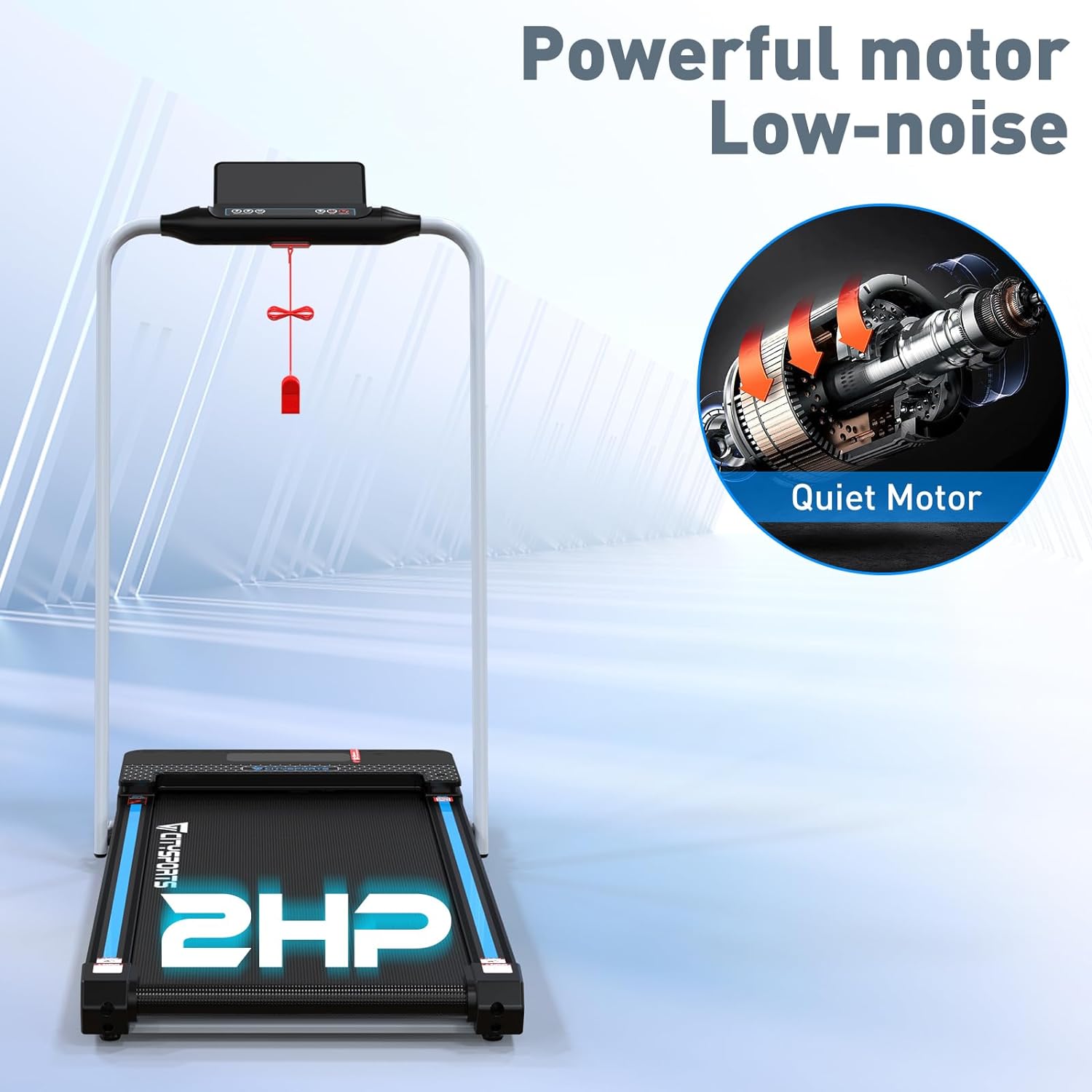 ✅︎ Système d'alimentation à haute performance : le tapis roulant est équipé d'un moteur d'une puissance de pointe de 2 CV, avec un module de réduction du bruit de la barrière, de sorte que le tapis roulant peut être hautement opérationnel avec un faible niveau de bruit.