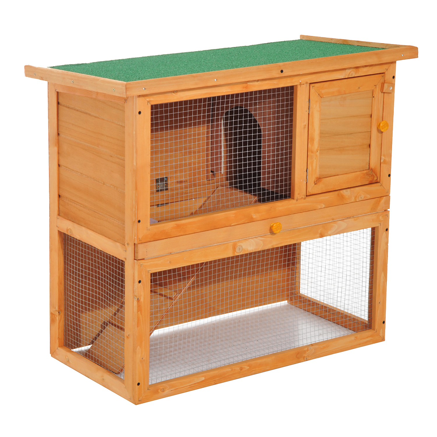 Clapier à lapin cage à lapin 2 étages plateau coulissant rampe et toit ouvrant 90L x 45l x 80H cm