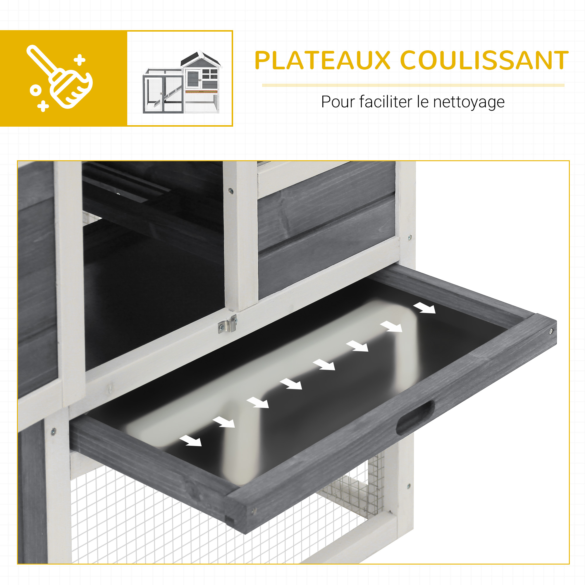 - Nombreux équipements pour plus de fonctionnalité : grand enclos grillagé à même le sol, rampe d'accès, fenêtre, grande porte pour les soins, l'alimentation, verrou de sécurité, etc.