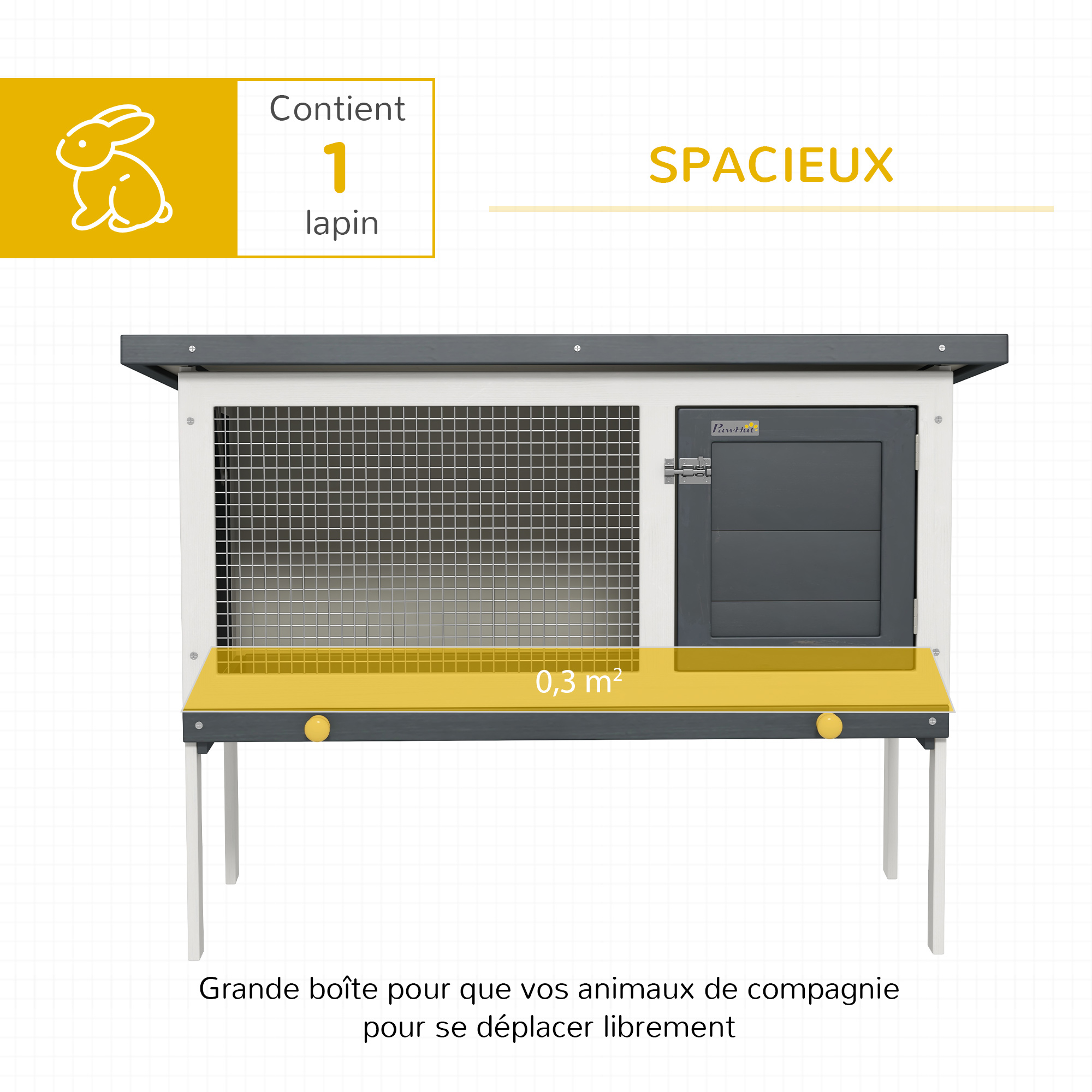 Clapier sur pied cage à lapin avec niche intérieure toit ouvrant porte verrouillable dim. 90L x 45l x 65H