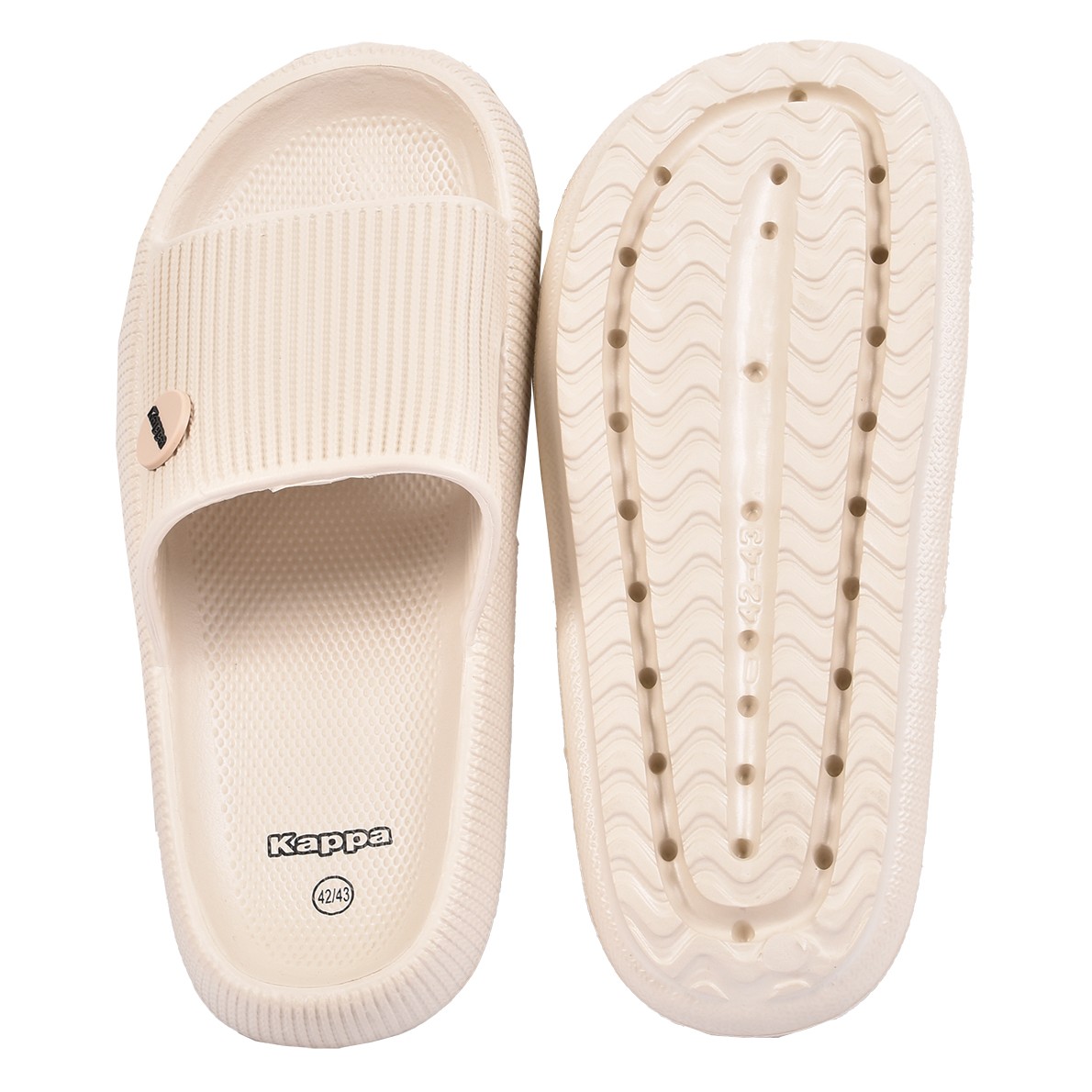 Claquettes Piscine Homme KAPPA – Confort & Sécurité Conçues pour être portées aussi bien en milieu sec qu’humide, les claquettes KAPPA pour homme sont idéales pour la douche, la piscine ou les moments de détente.   Leur semelle moulée amortit chacun de vos pas pour un confort optimal, tandis que la semelle extérieure en caoutchouc texturé offre une adhérence parfaite, même sur sols mouillés. Avec leur séchage rapide et leur design pratique, elles deviennent le compagnon indispensable pour toutes vos activités liées à l’eau.  Avantages : Confortables & légères Solides et durables Résistantes à l’eau et à la chaleur Séchage rapide Semelle antidérapante pour plus de sécurité  Détails produit : Dessus : EVA Doublure : EVA Semelle : EVA Type de talon : Plat Hauteur du talon : 1 cm Largeur : Standard  Tailles disponibles : 40/41 – 42/43 – 44/45