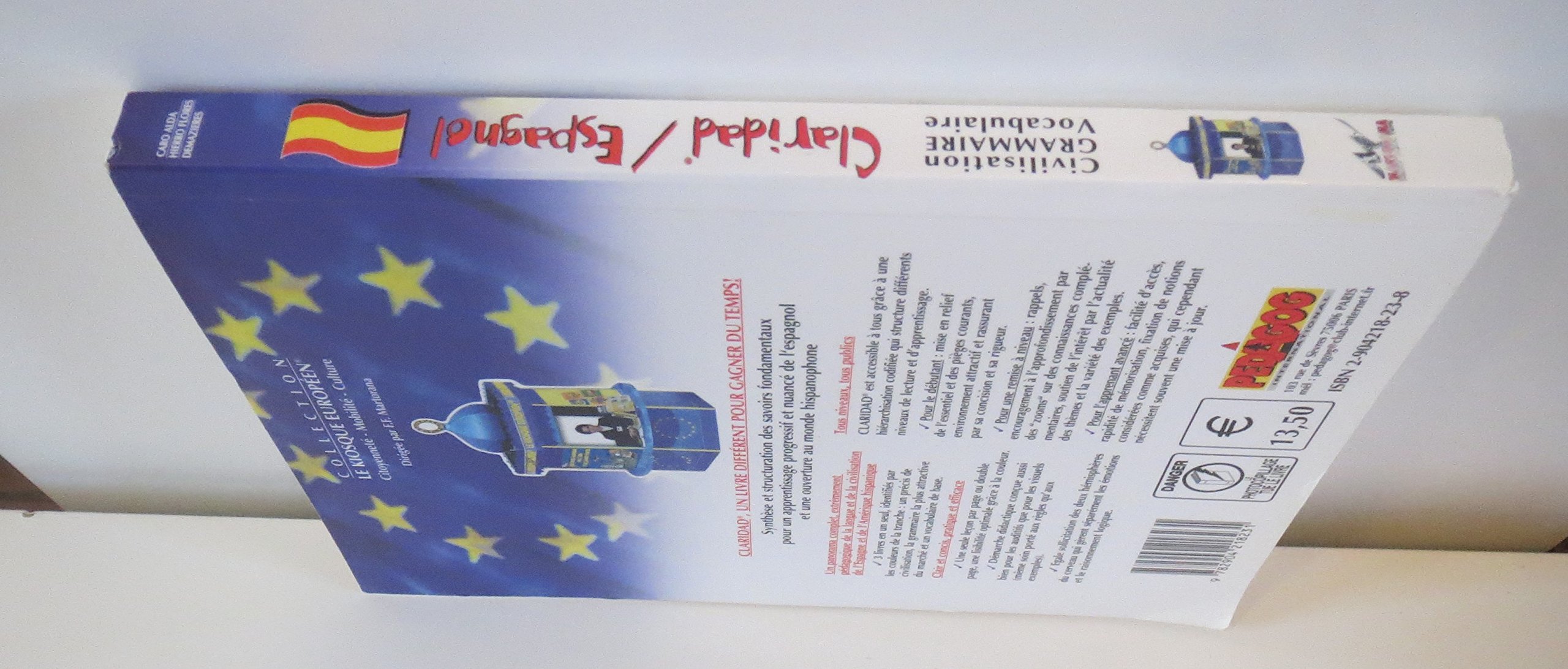 Pour une France européenne avec les langues vivantes Pour faire évoluer favorablement le principe d'une Europe citoyenne, la connaissance de nos voisins par la pratique de leur langue et la découverte de leur culture est indispensable. Depuis 1978, nos livres développent une dynamique d'apprentissage ou de révision des langues européennes en faisant « cohabiter » dans un même ouvrage la civilisation, la grammaire et le vocabulaire. Ainsi se trouve affirmée de manière inédite la nécessaire prise en compte du caractère indissociable de la langue, du comportement et de la culture dans toute interaction de communication et dans tout apprentissage d'une langue étrangère. Claridad®, un livre différent pour gagner du temps ! Synthèse et structuration des savoirs fondamentaux pour un apprentissage progressif et nuancé de l'espagnol. En conformité avec les programmes du Secondaire. Un panorama complet de la langue et de la civilisation de l'Espagne et de l'Amérique hispanique ¤ 3 livres en un seul, identifiés par les couleurs de la tranche : un précis de civilisation, la grammaire la plus attractive du marché et un vocabulaire de base. Clair et concis, pratique et efficace . Une seule leçon par page ou double page, une lisibilité optimale grâce à la couleur. . Démarche didactique conçue aussi bien pour les auditifs que pour les visuels (même soin apporté aux règles et aux exemples). . Egale sollicitation des deux hémisphères du cerveau qui gèrent séparément les émotions et le raisonnement logique. Tous niveaux, tous publics Claridad® est accessible à tous grâce à une hiérarchisation codifiée qui structure différents niveaux de lecture et d'apprentissage. . Pour le débutant : mise en relief de l'essentiel et des pièges courants, environnement attractif et rassurant par sa concision et sa rigueur. . Pour une remise à niveau : rappels, encouragement à l'approfondissement et soutien de l'intérêt par l'actualité des thèmes et la variété des exemples. . Pour l'apprenant avancé : facilité d'accès, rapidité de mémorisation, fixation de notions considérées comme acquises, qui cependant nécessitent souvent une mise à jour.