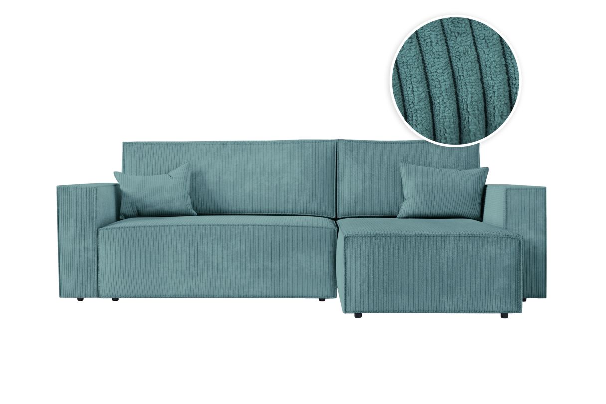 CLARISSE - Canapé d'angle convertible réversible avec coffre en velours côtelé - Bleu clair