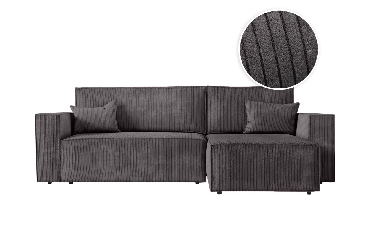 | Libellé | CLARISSE - Canapé d'angle convertible réversible avec coffre en velours côtelé - Gris foncé |