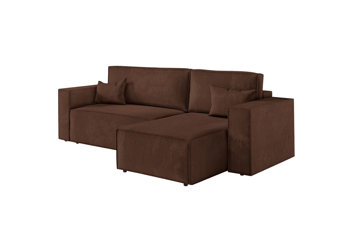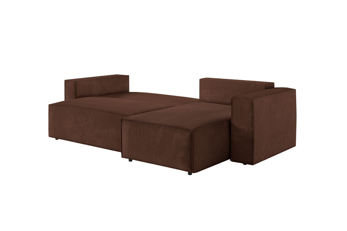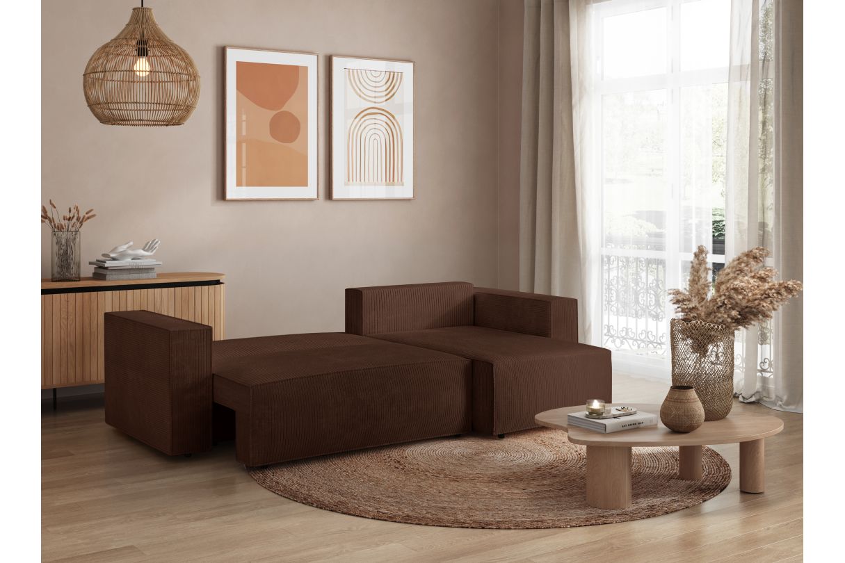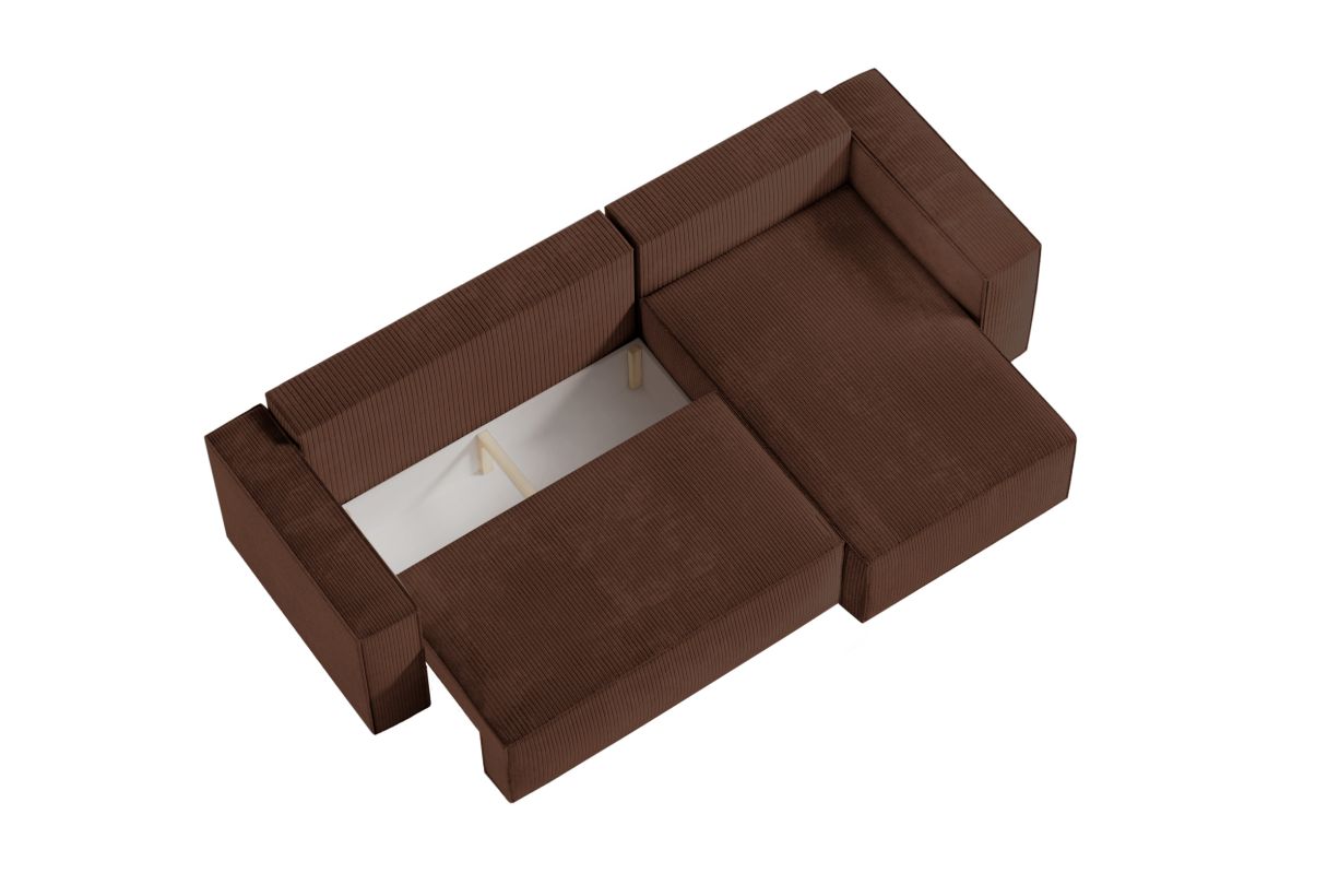 CLARISSE - Canapé d'angle convertible réversible avec coffre en velours côtelé - Marron