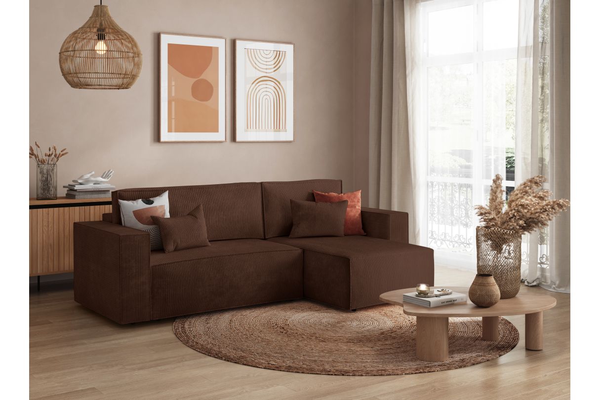 | Libellé | CLARISSE - Canapé d'angle convertible réversible avec coffre en velours côtelé - Marron |