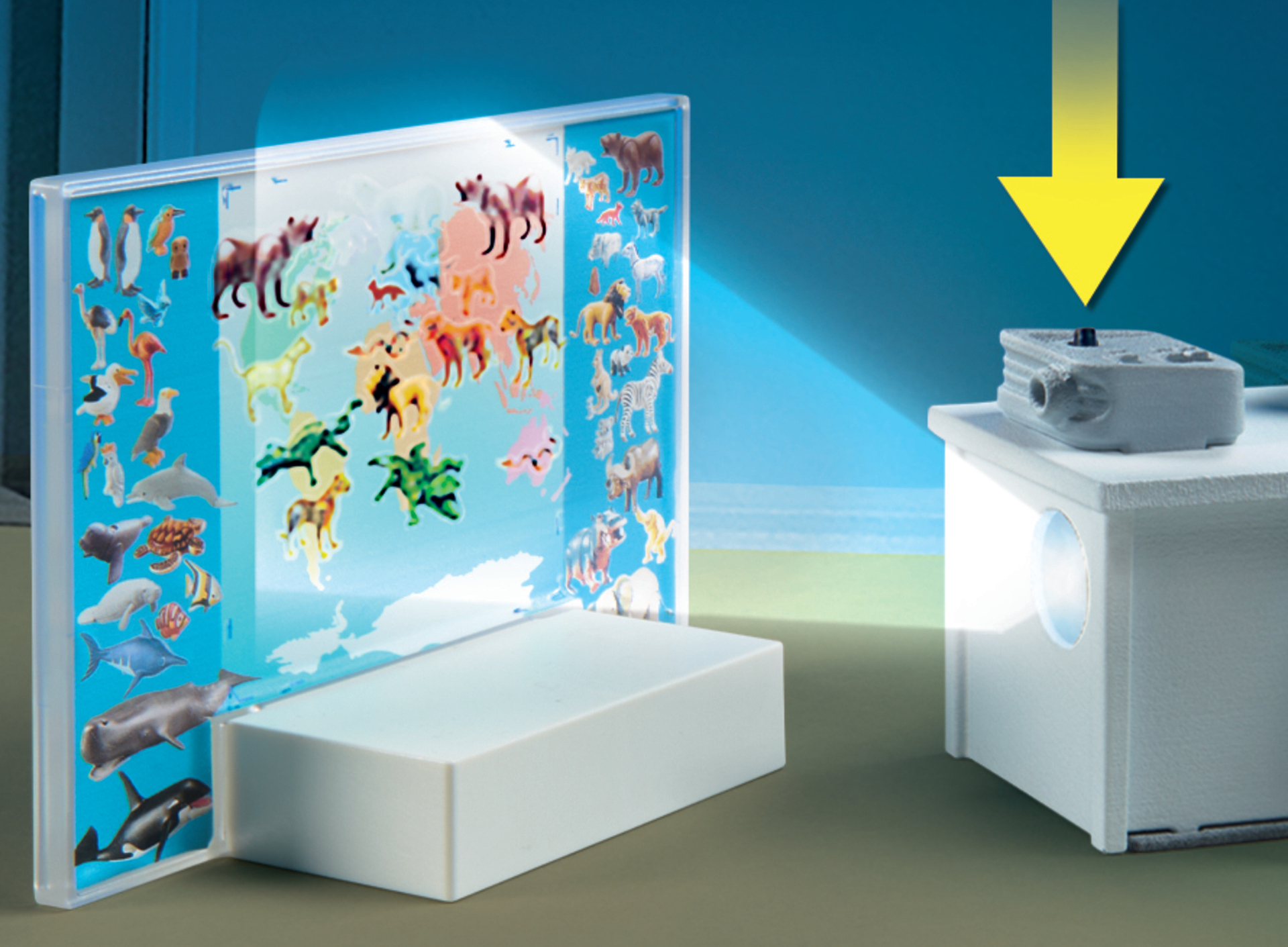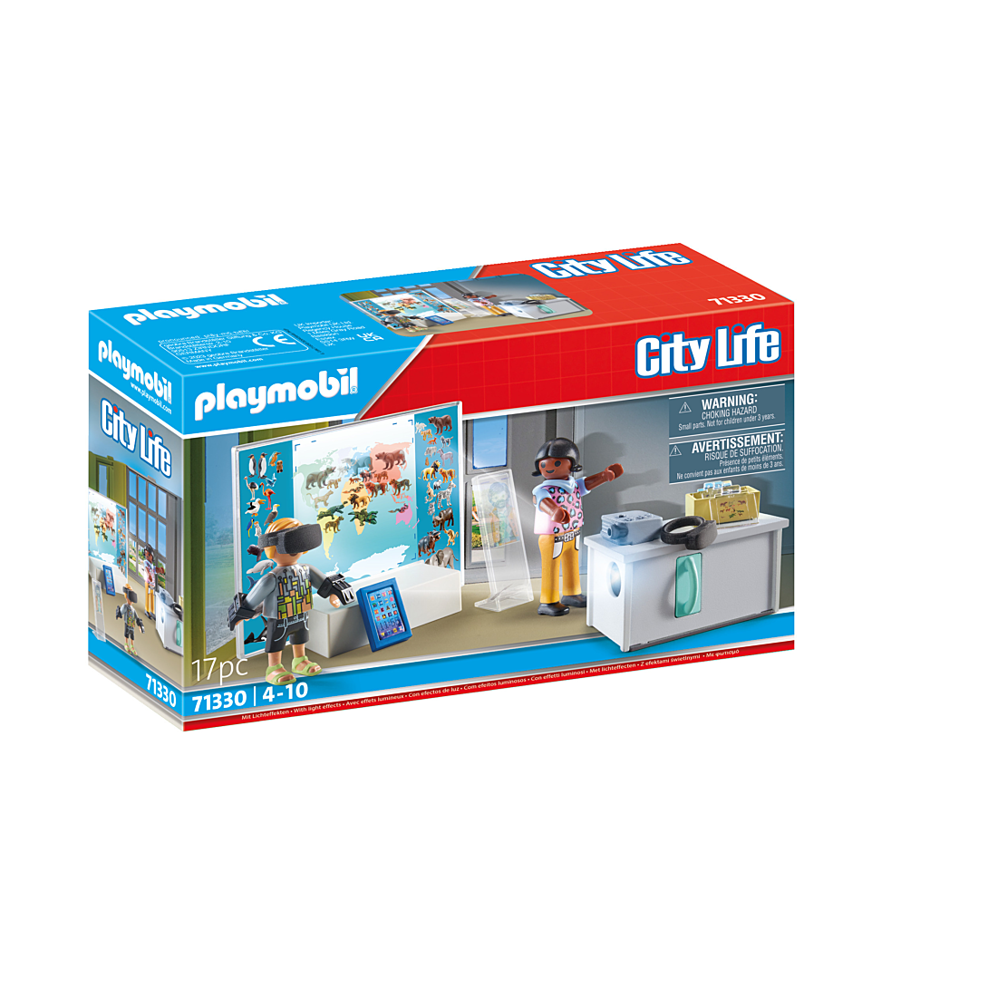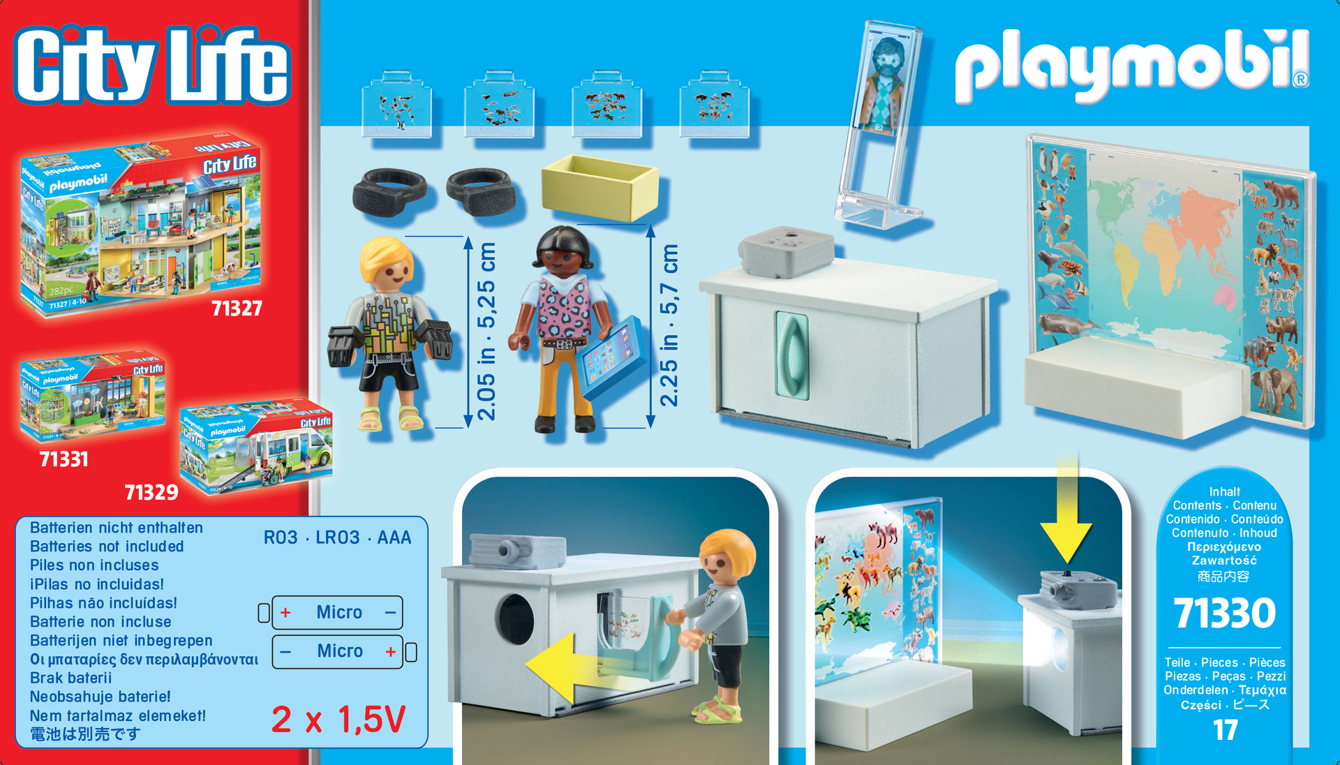| Plus produit | Avec deux personnages, des accessoires et des casques de réalité virtuelle. \nLe projecteur fonctionnel permet de montrer en grand plusieurs plaquettes transparentes (nécessite 2 piles AAA 1,5V).\nAvec du mobilier et plusieurs plaques pédagogiques. |