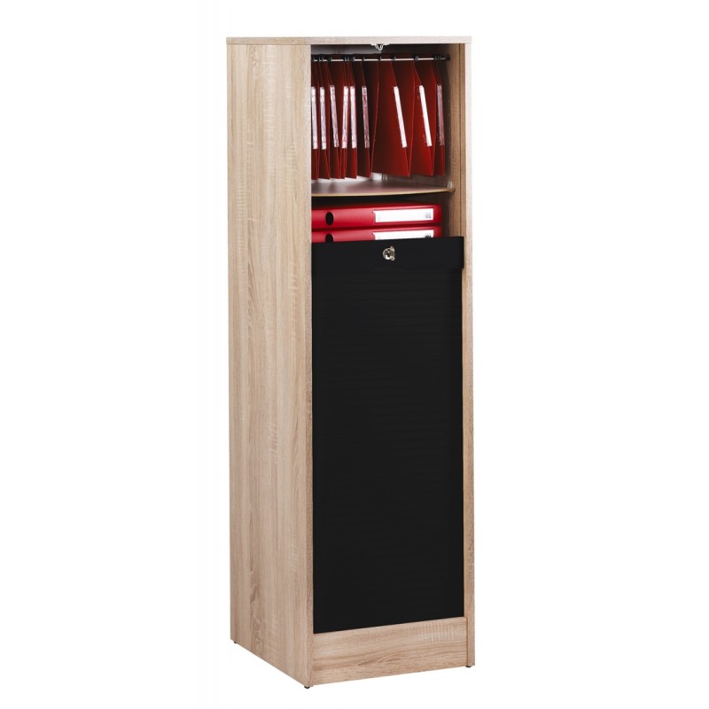 Classeur à Rideau Chêne et Rideau Noir Hauteur 140 cm