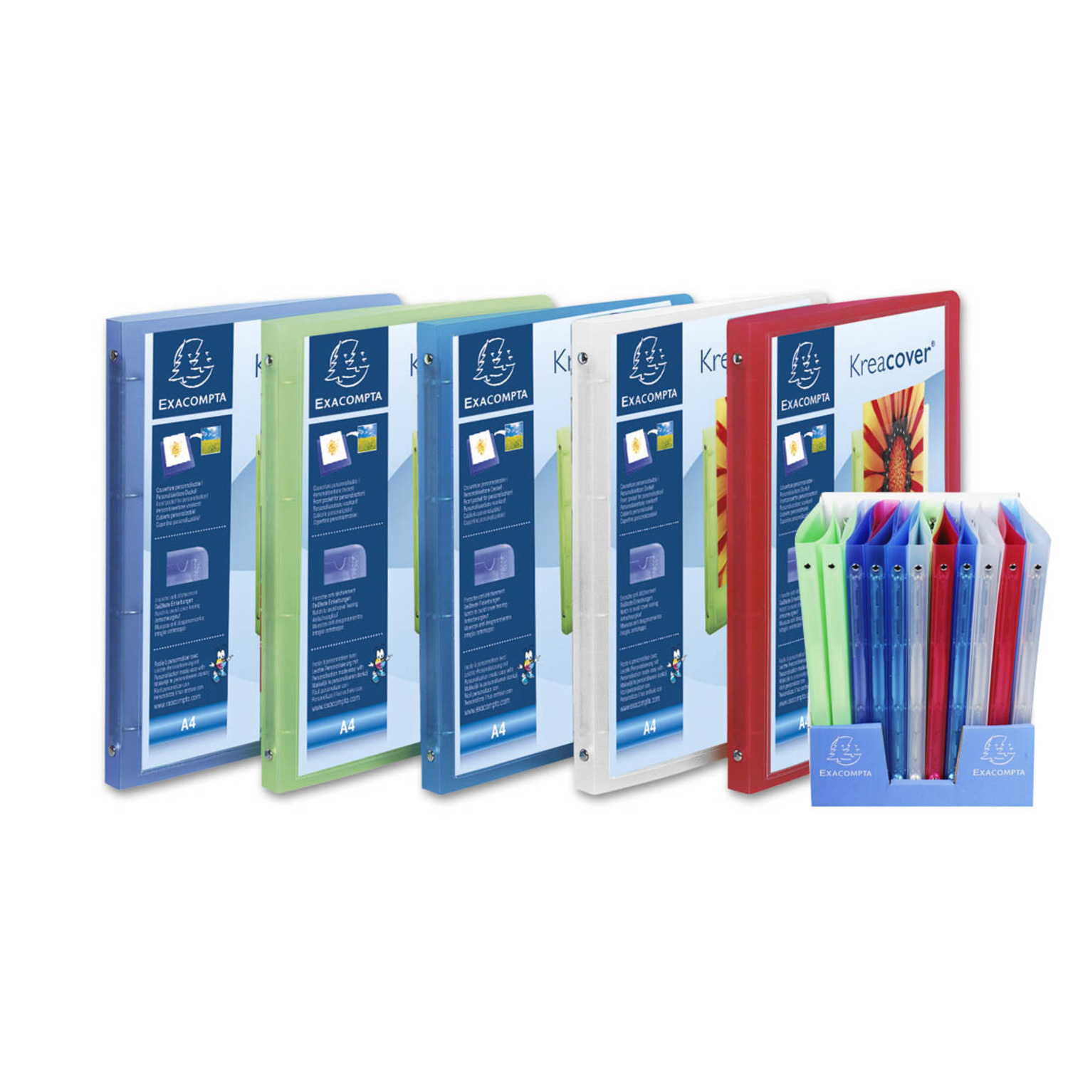 Classeur Personnalisable Dos De 20 Mm 210X297 4 Anneaux-Diam 15-Ecart 80 Polypropylene Translucide 5/10Eme 5 Couleurs Assorties