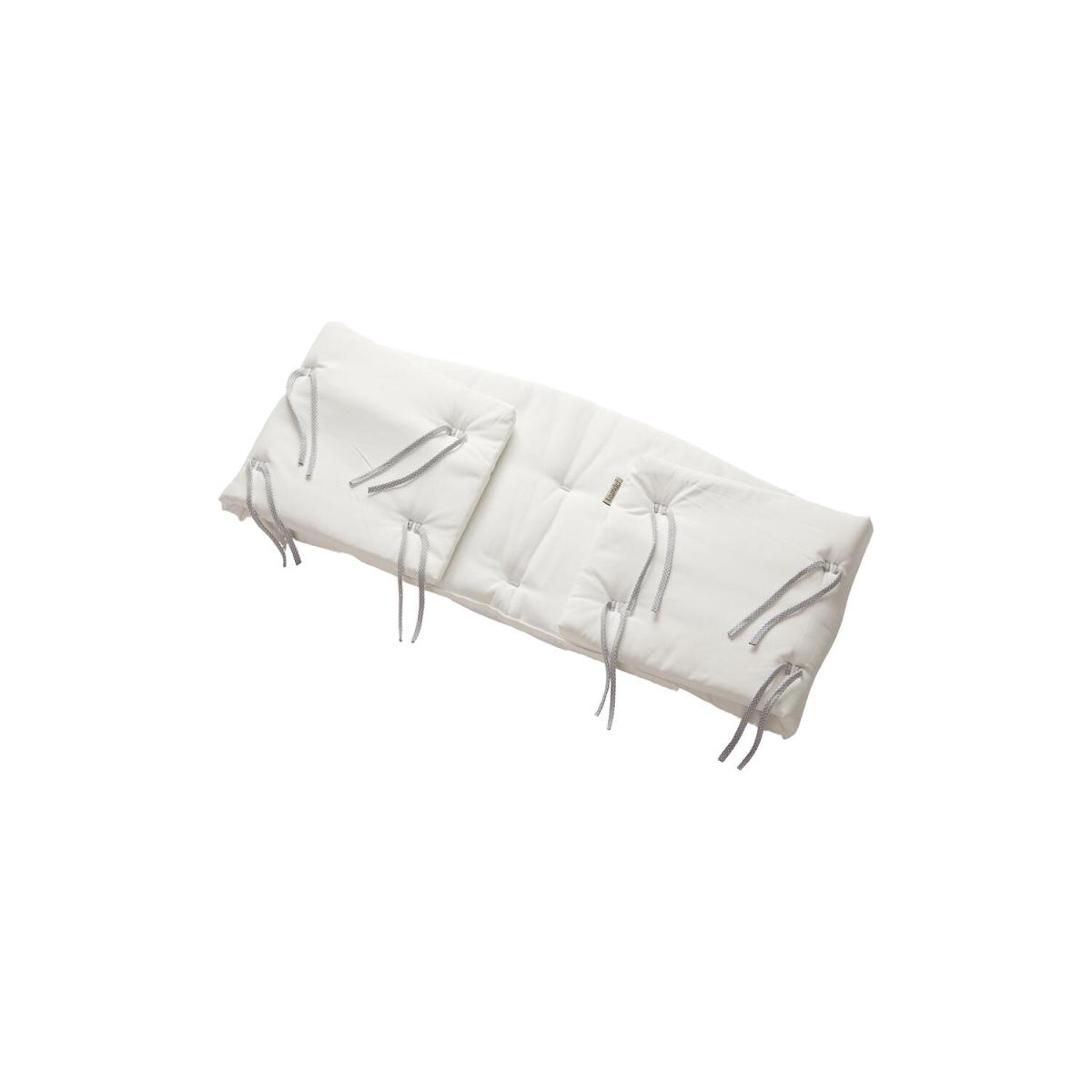 Si vous souhaitez que le tour de lit recouvre tout le lit, il est possible d'attacher deux tours de lit. Le tour de lit est fixé avec des liens et peut être placé selon les besoins. La base du lit bébé Leander Classic a deux réglages et le tour de lit peut être utilisé avec les deux réglages.