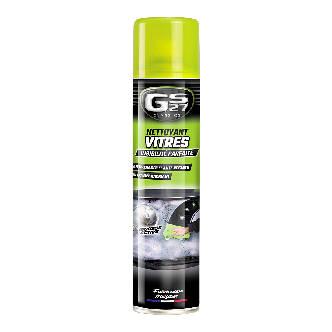 Avec sa mousse active aux propriétés antistatiques, le Nettoyant Vitres GS27 Classics® nettoie facilement toutes les vitres intérieures et extérieures et il dissout les films gras et secs. Il élimine également les résidus de climatisation, de chauffage et de fumée de cigarettes