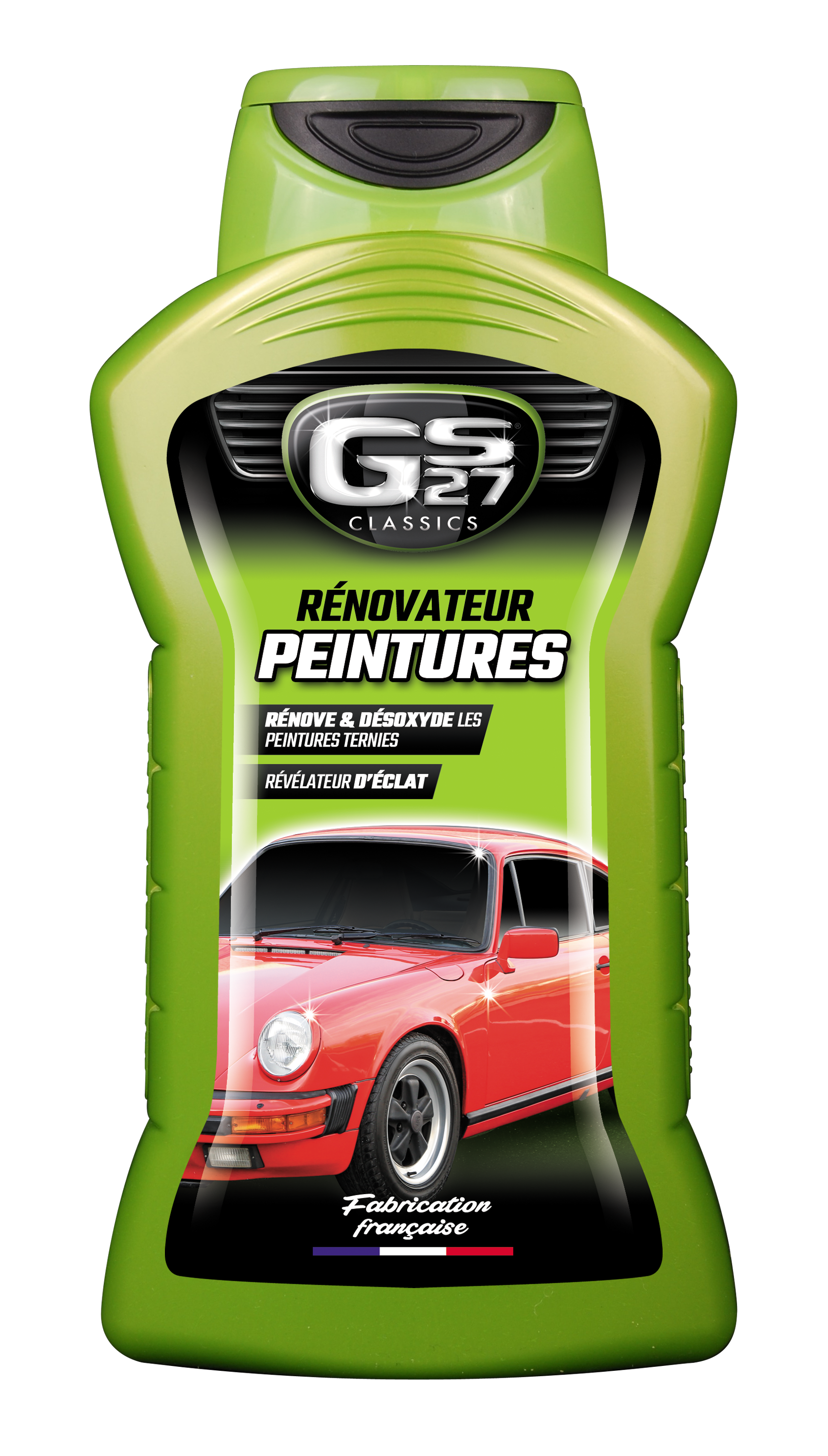 "Le Rénovateur Peintures GS27 Classics®enlève le voile terne accumulé au fil du temps en désoxydant en profondeur la carrosserie de votre véhicule. Il redonne à votre carrosserie sa brillance d'origine. Nous vous conseillons de terminer par l'application du Lustreur Titanium+® GS27 Classics® pour encore plus de brillance et de protection. "