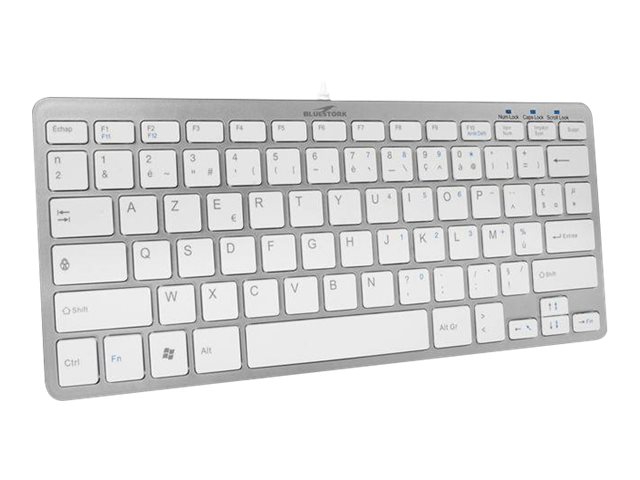Bluestork BS-KB-MINI-MAC. Facteur de forme du clavier: Sans clé (80 - 87%), Technologie de connectivité: Sans fil, Interface de l'appareil: Bluetooth, Interrupteur à clé de clavier: Clavier à membrane, Nombre de touches du clavier: 78, Utilisation recommandée: Universel. Couleur du produit: Blanc