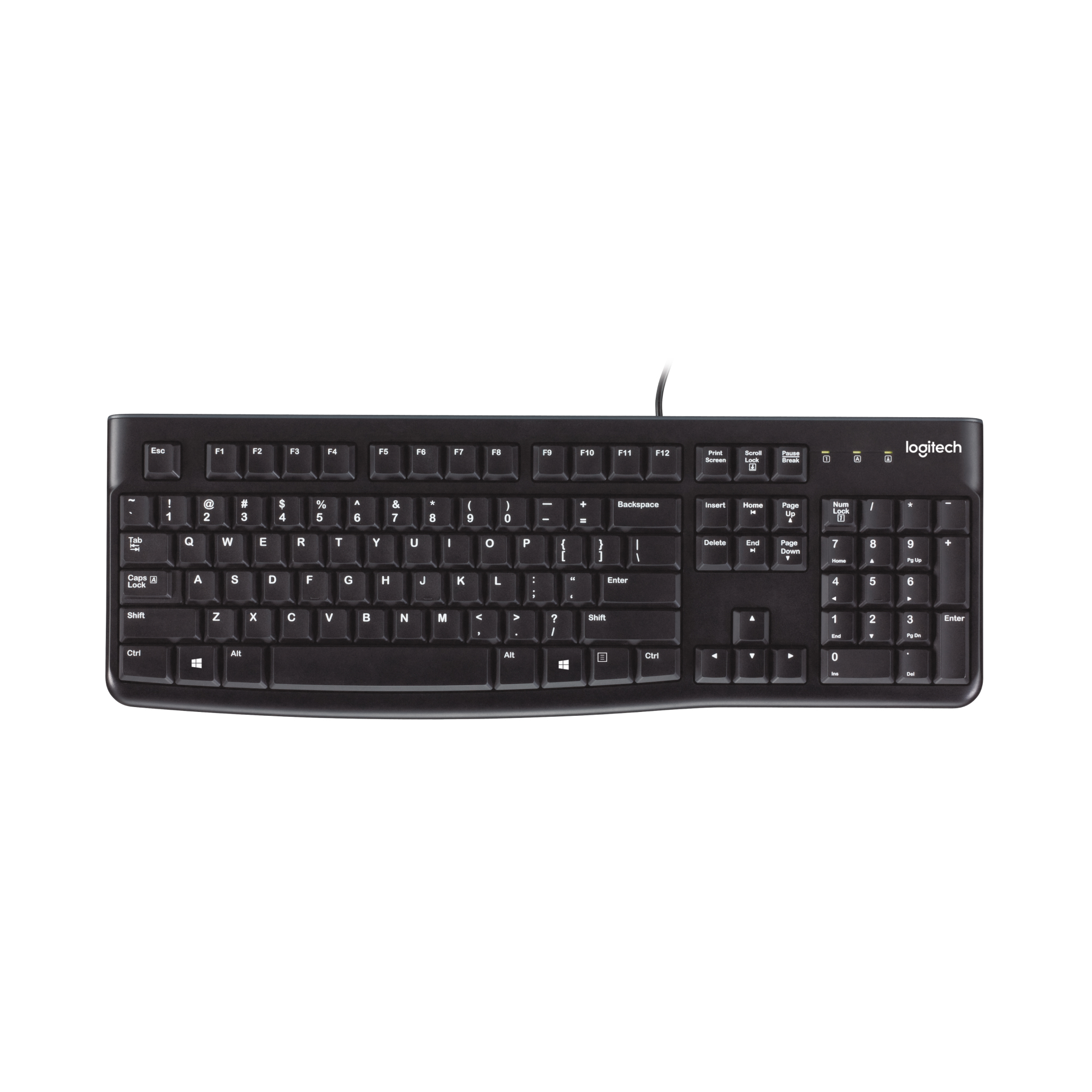Logitech K120 Corded Keyboard. Technologie de connectivité: Avec fil, Interface de l'appareil: USB, Disposition des touches du clavier: AZERTY. Longueur de câble: 1,5 m. Utilisation recommandée: Universel. Couleur du produit: Noir.