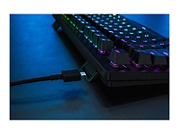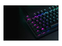 Clavier grand format sans pavé numérique Rétroéclairage 16.8 millions de couleurs Touches opto-linéaires pour des frappes plus rapides et plus réactives (100 millions de frappes) Touches en PBT à double injection pour une finition mate robuste et texturée